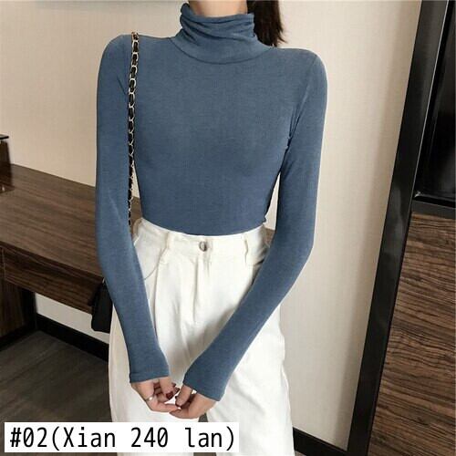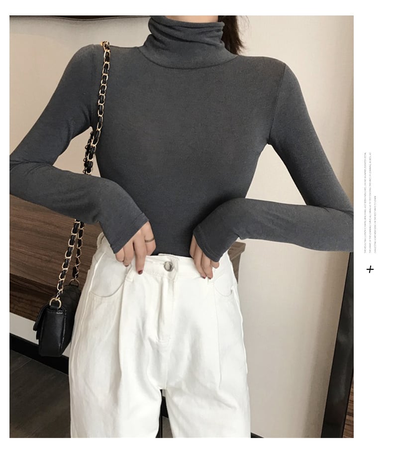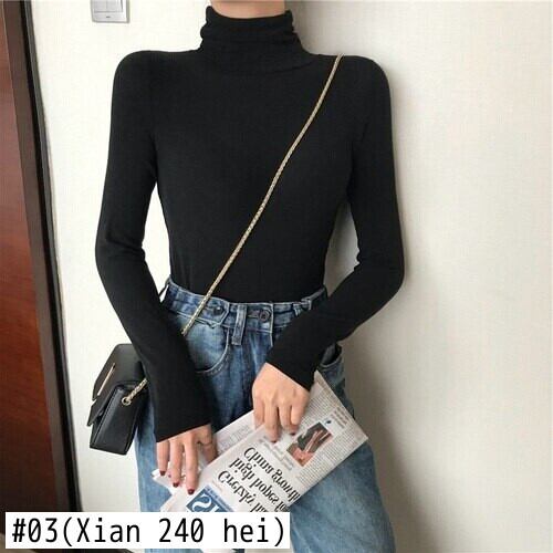 原宿黒、白タートルネック Tシャツ秋の女性固体長袖 Tシャツスリムベーシック Tシャツトップ ロング ホワイト ブラック かわいい オータム 秋物 ソリッドカラー Aim19198150930