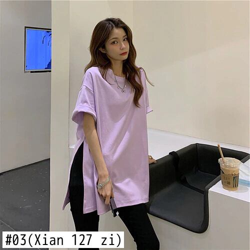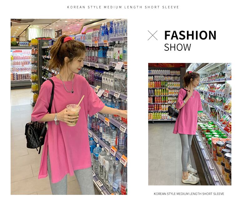 ホット販売夏半袖女性 tシャツ大サイズソリッドルーズロング tシャツ純粋な綿サイドスプリット tシャツ白トップス tシャツ ホワイト コットン 大きめサイズ サマー 夏物 ピュア ソリッドカラー Aim30896940958