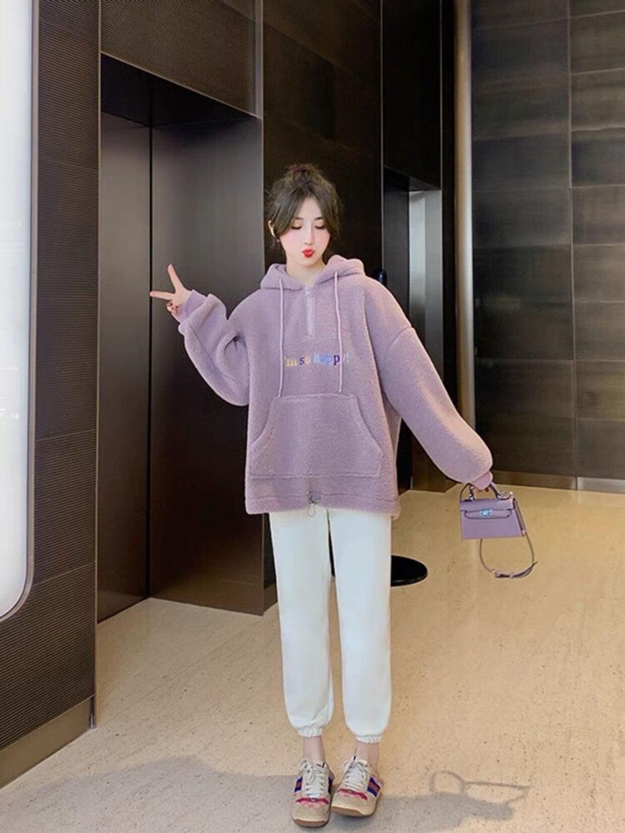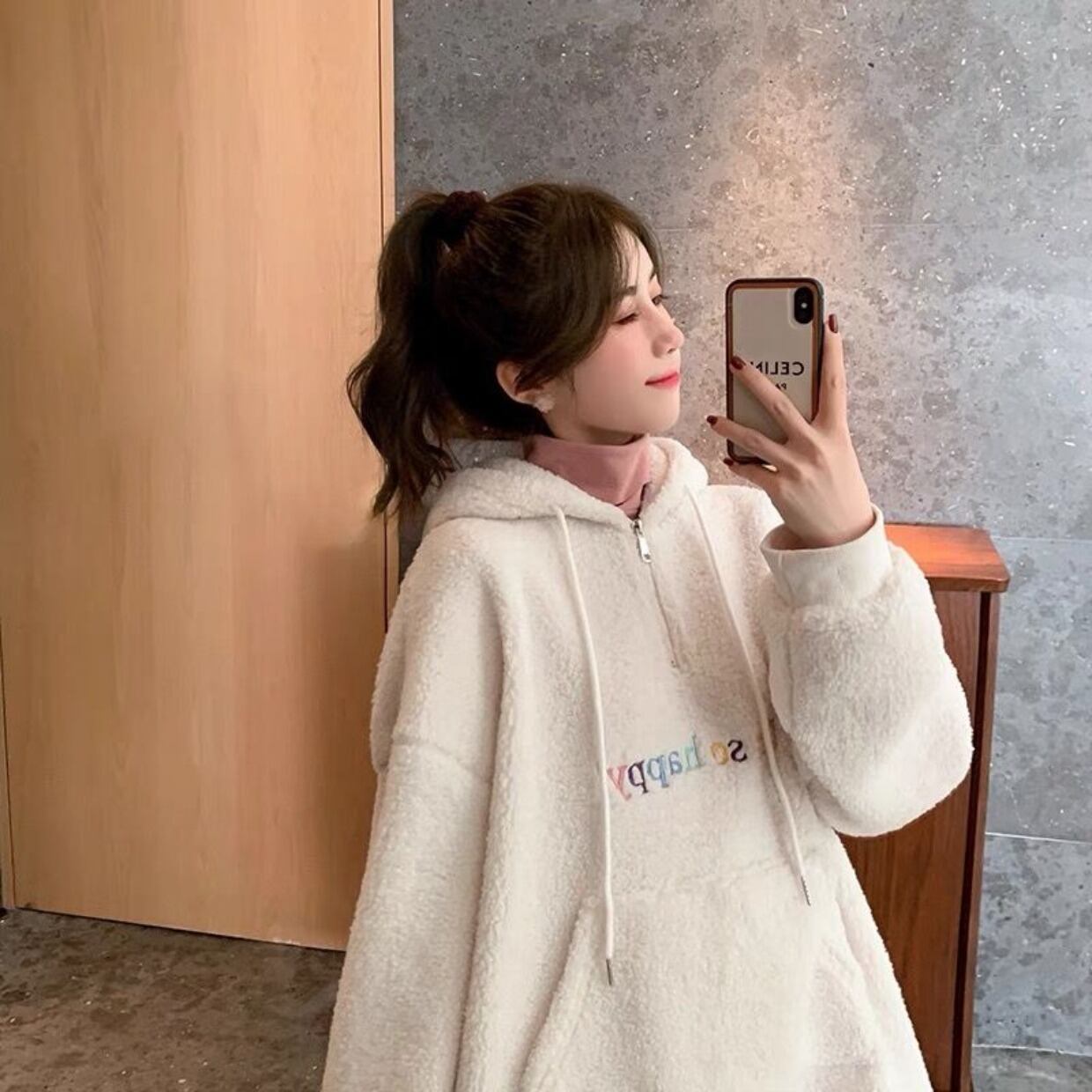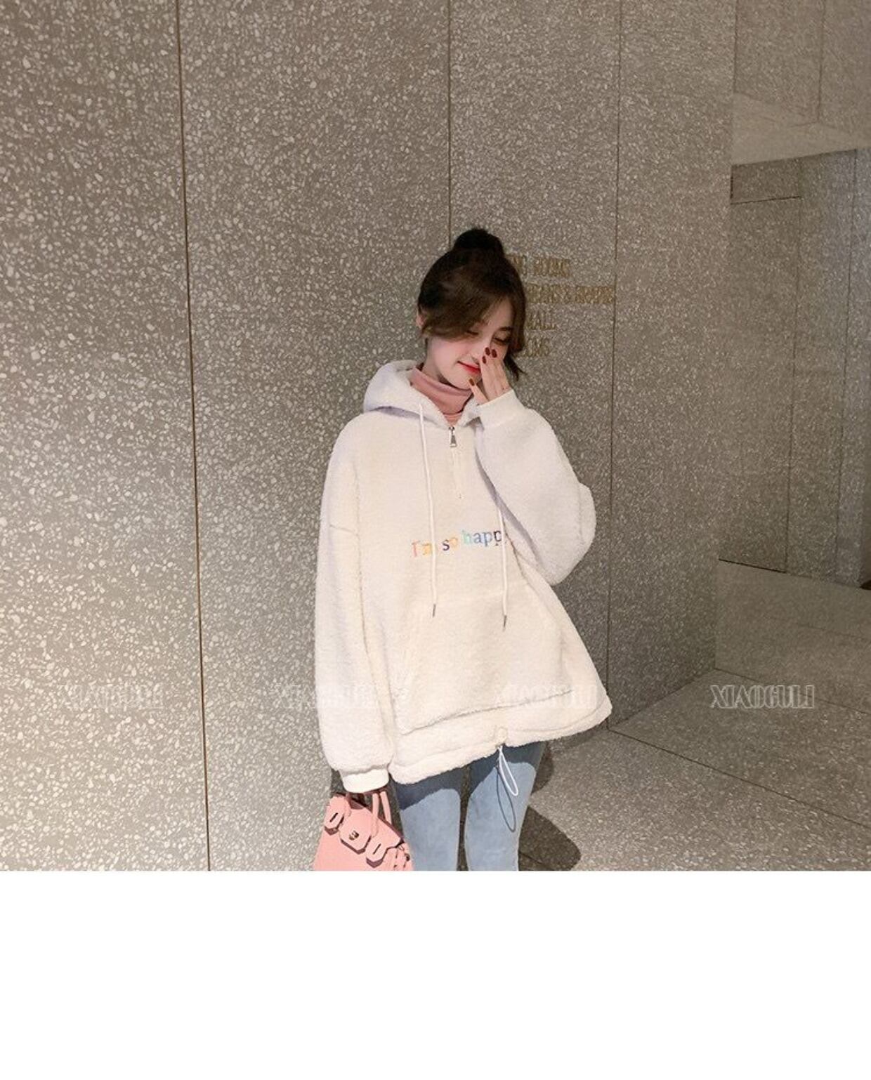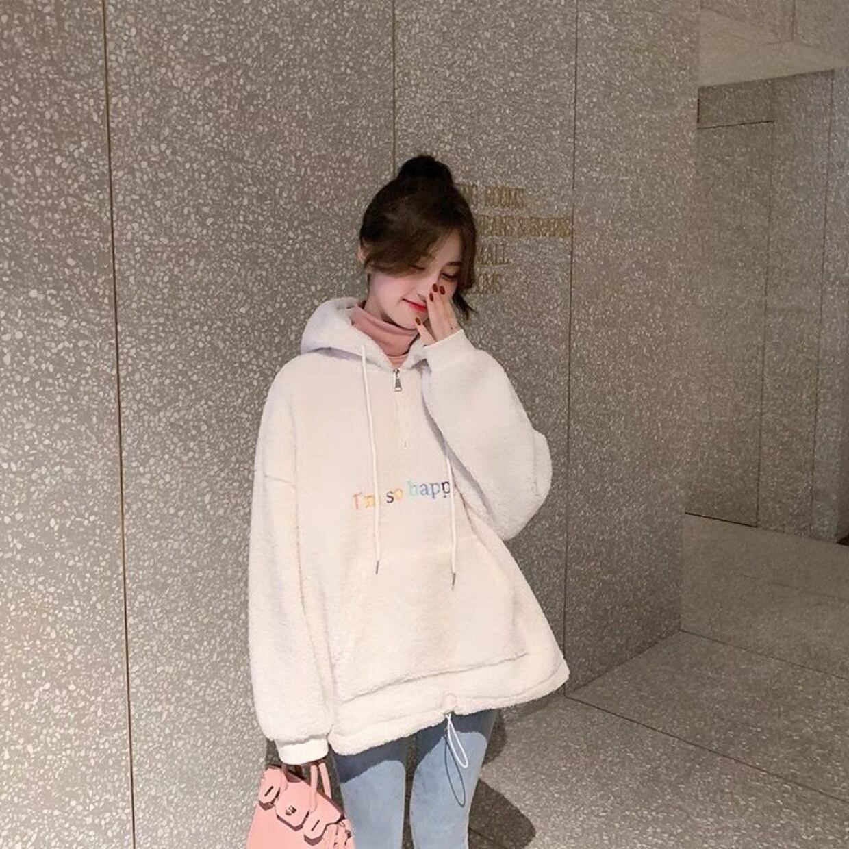秋冬パーカー女性厚み子羊フリース特大パーカー原宿手紙刺繍カジュアルフルスリーブパーカースウェットシャツ かわいい オータム 秋物 ウィンター 冬物 Aim23891184701