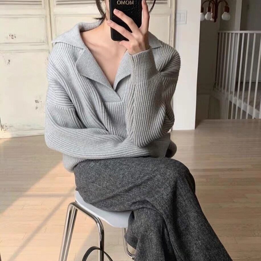 秋全試合ニットセータープルオーバー原宿基本長袖固体セータージャンパートップス Y2K 女性服 ロング かわいい オータム 秋物 ソリッドカラー Aim18647991008