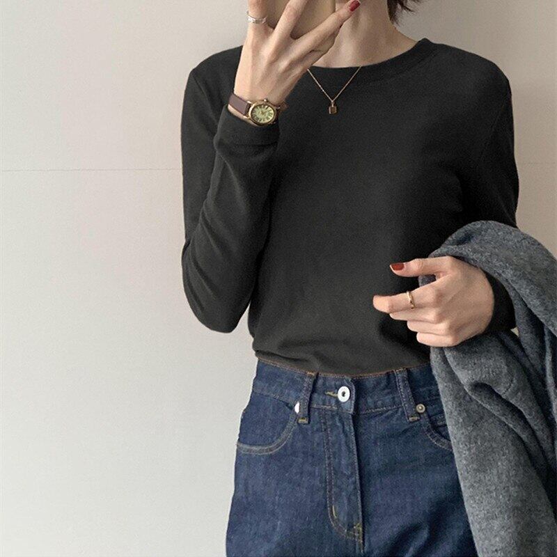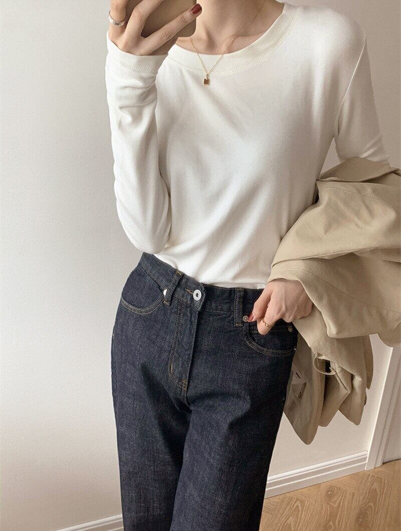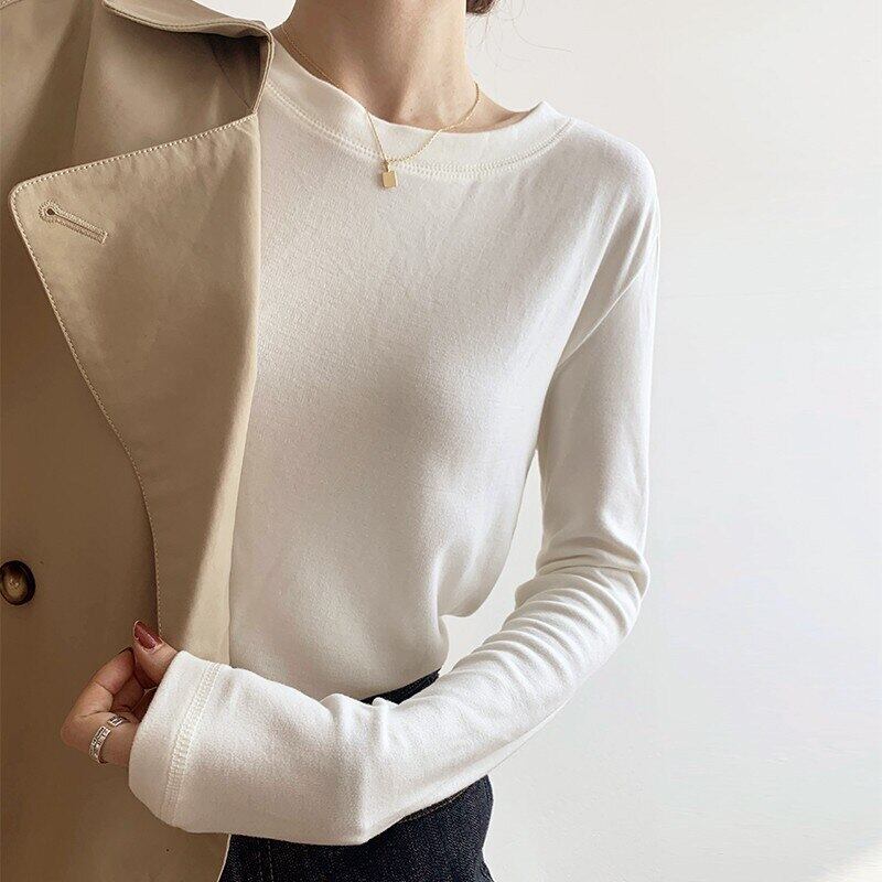 秋冬ベルベット長袖ソリッド Tシャツ女性原宿スリム厚く暖かい底入れ Tシャツ白 y2k トップス ロング ホワイト かわいい オータム 秋物 ウィンター 冬物 ソリッドカラー Aim27629393792