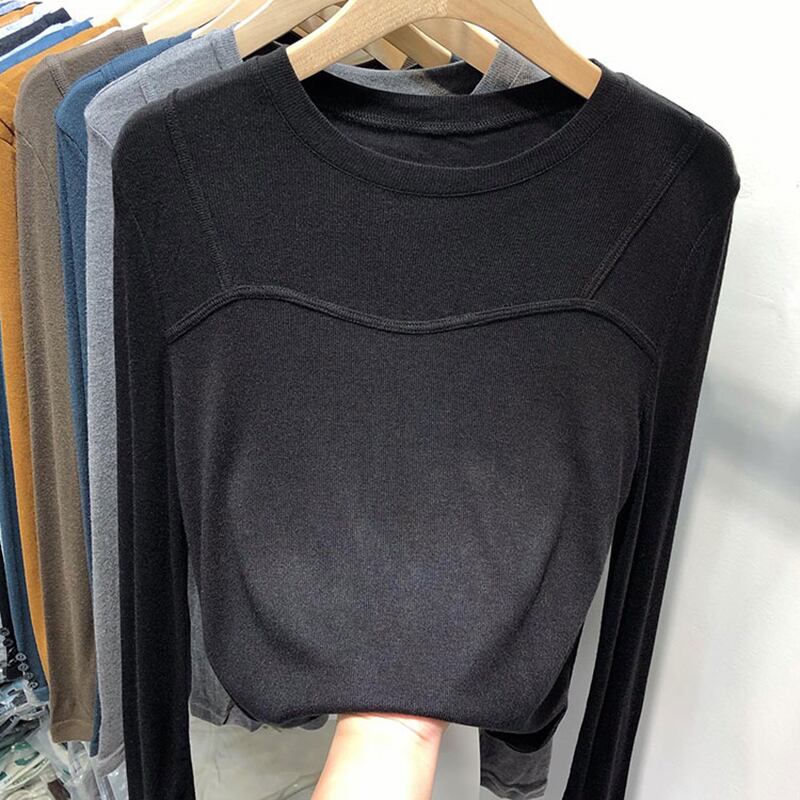 ファッションスリム O ネック厚く暖かい固体 tシャツ秋冬フリース女性 Tシャツ長袖ソフト底入れ Tシャツ白黒トップス ロング ホワイト ブラック オータム 秋物 ウィンター 冬物 Oネック ソリッドカラー Aim47438853128