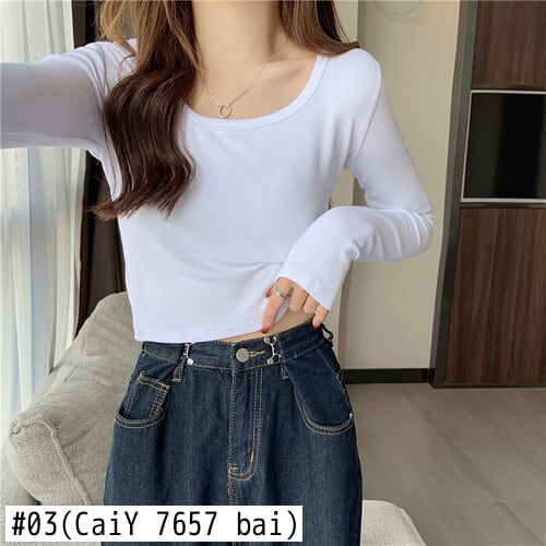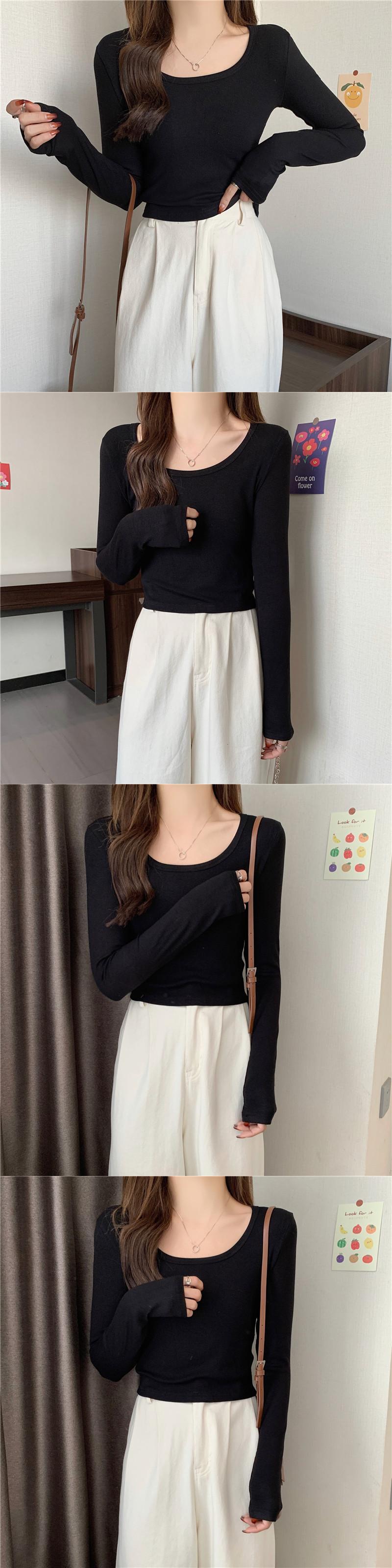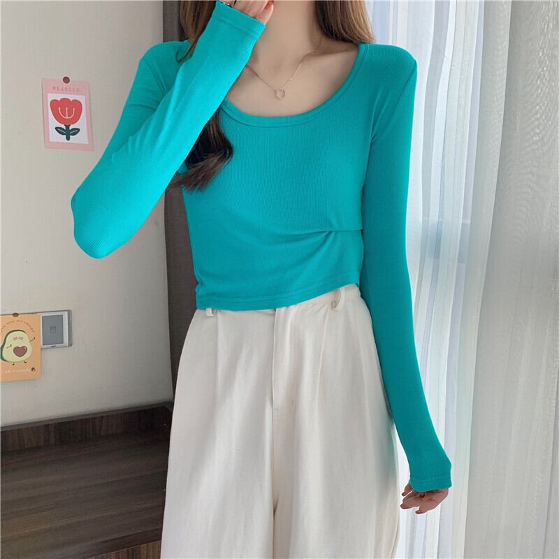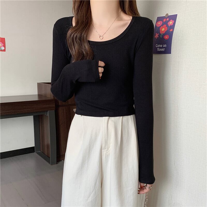 原宿固体基本的な長袖の女性の Tシャツスリムクロップトップ Tシャツ若い白黒 Tシャツ ロング ホワイト ブラック かわいい ソリッドカラー Aim10657410881