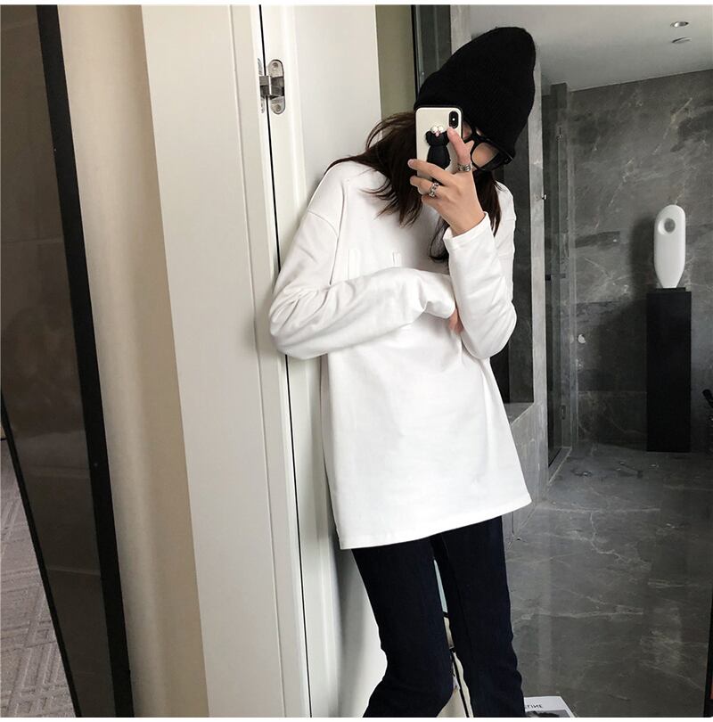 女性 Tシャツ原宿ベーシックコットン O ネック白 Tシャツシンプルな BF アップリケトップヒップスターストリート ホワイト かわいい Oネック Aim30416050387