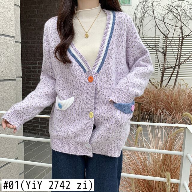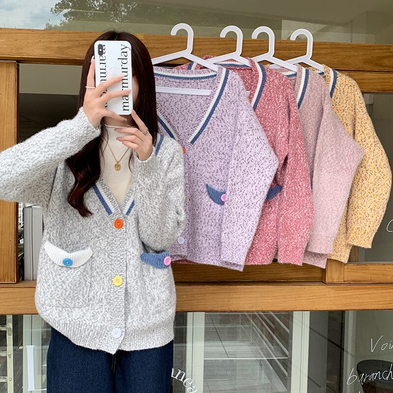 秋冬 V ネック女性シングルブレストカラーマッチング長袖セーターニット特大カーディガンジャンパーソフトコート ロング オータム 秋物 ウィンター 冬物 Vネック Aim73267264289