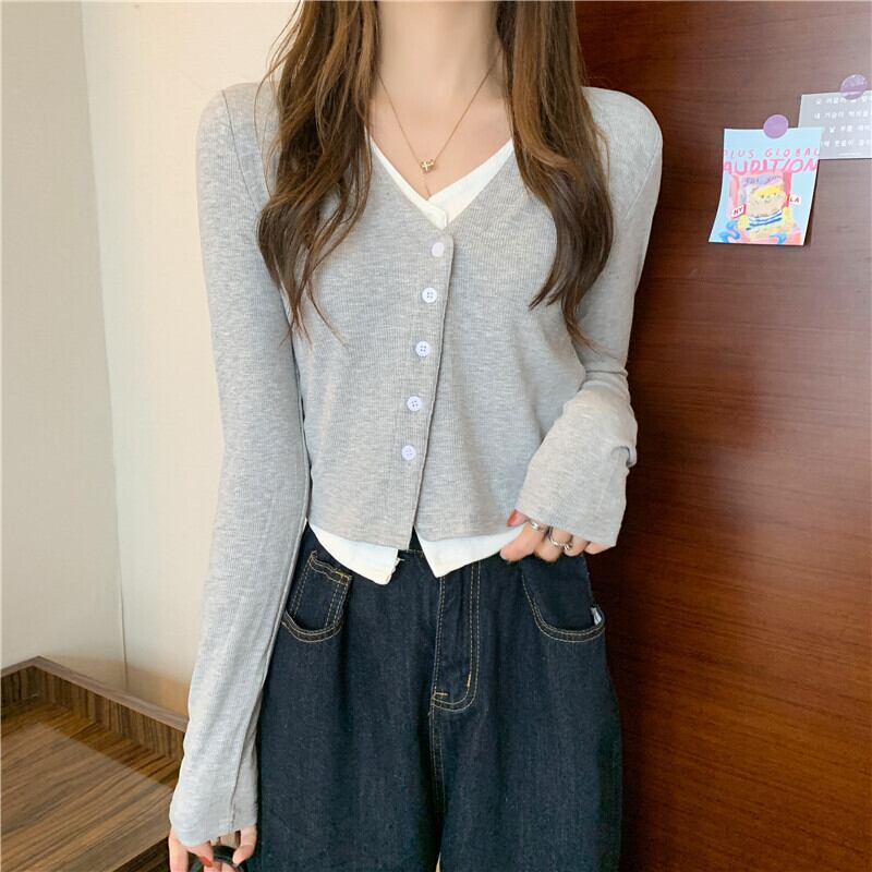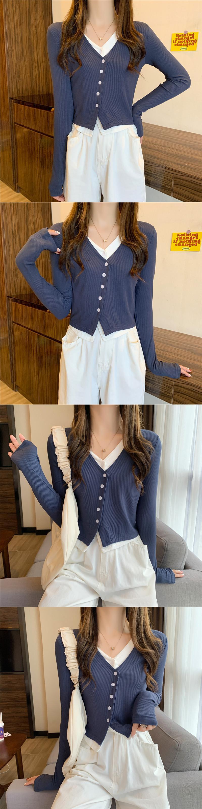 クロップトップ女 ロング ブラック コットン 長袖 シャツ ストリート スリム Tシャツ ピュア Aim8841926962