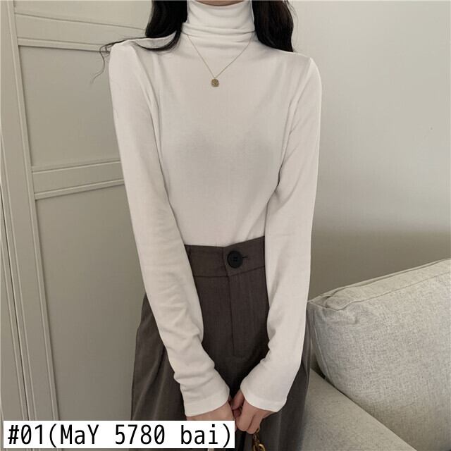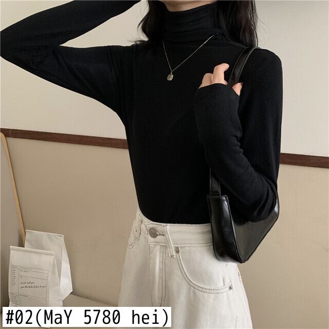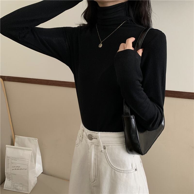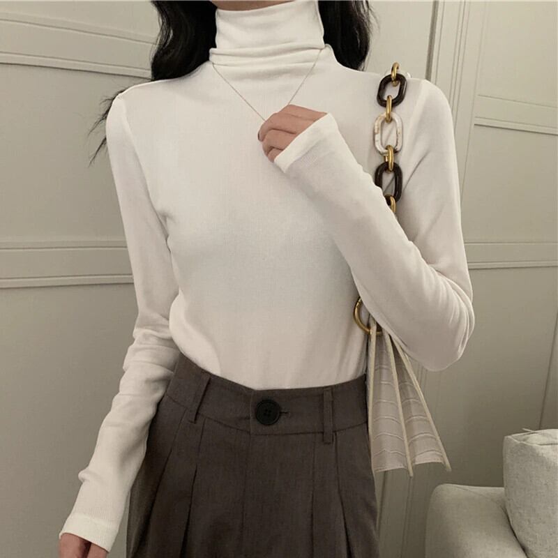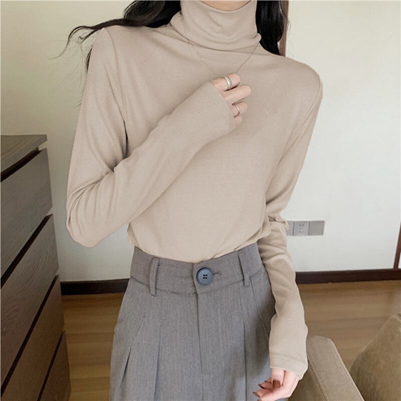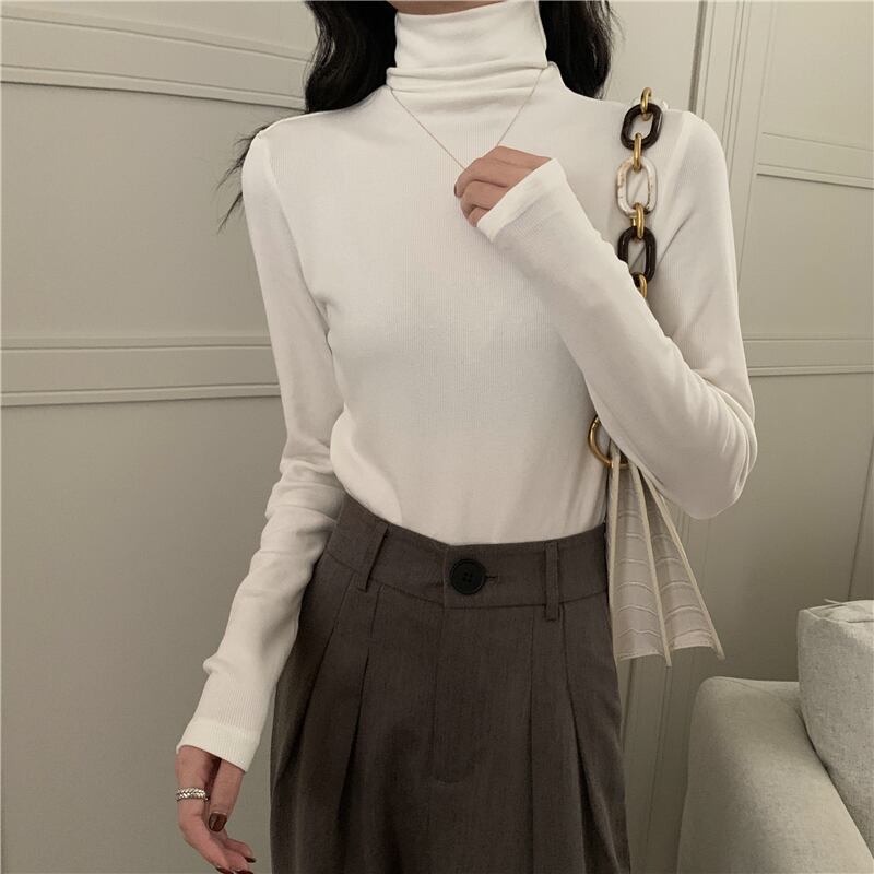 女性 tシャツ春長袖タートルネック女性 tシャツ韓国服スタイル秋の固体スリム底入れ tシャツ白トップス ロング ホワイト スプリング 春物 オータム 秋物 ソリッドカラー Aim91245678131