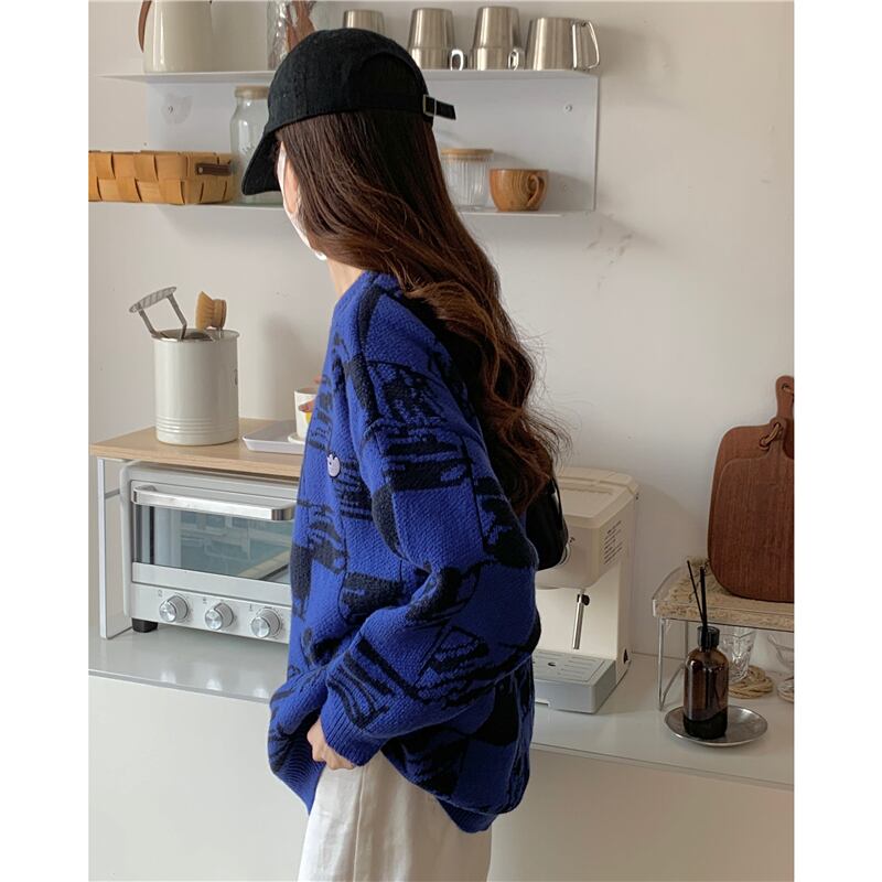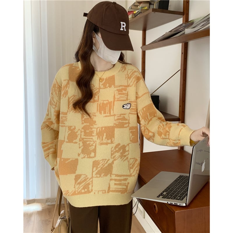 秋冬肥厚刺繍漫画チェッカーセーター女性の ese 学校スタイルソフトワクシーブルートップコート女性セーター オータム 秋物 ウィンター 冬物 Aim96218217938