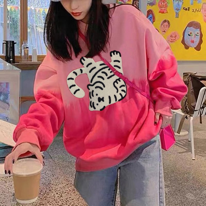 原宿絞り染めプリント薄いトレーナーかわいい漫画刺繍パーカー女性長袖特大パーカーストリート y2k 服 ロング 大人ガーリー スウィート キュート カジュアル Aim89991463710