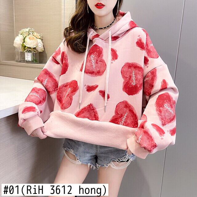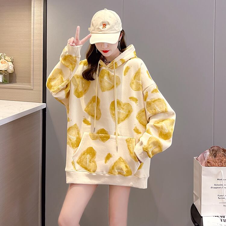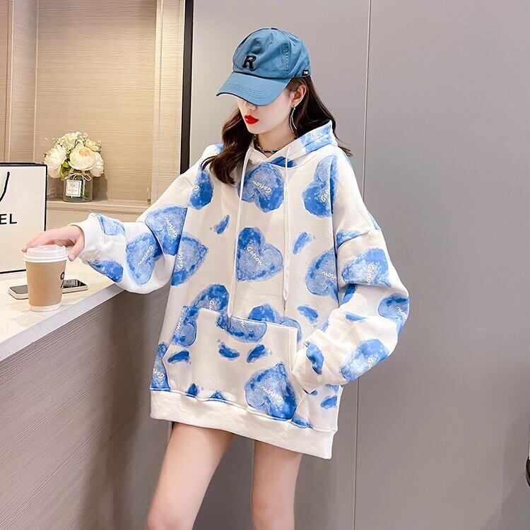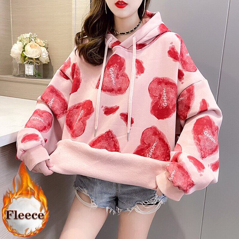 原宿プリントベルベット厚みのトレーナー秋冬フリース暖かいパーカー女性韓国長袖特大パーカーストリート ロング かわいい オータム 秋物 ウィンター 冬物 Aim14625695378