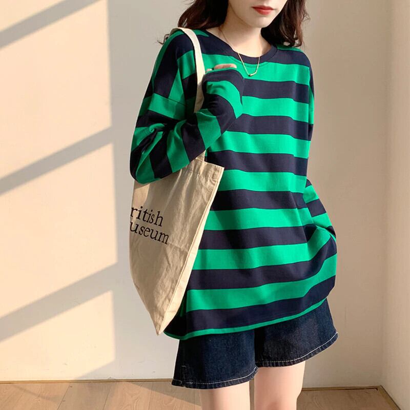 原宿ゴス純綿長袖ストライプ Tシャツ女性 O ネック特大底入れ Tシャツロング y2k トップス コットン かわいい Oネック ピュア Aim12529351070