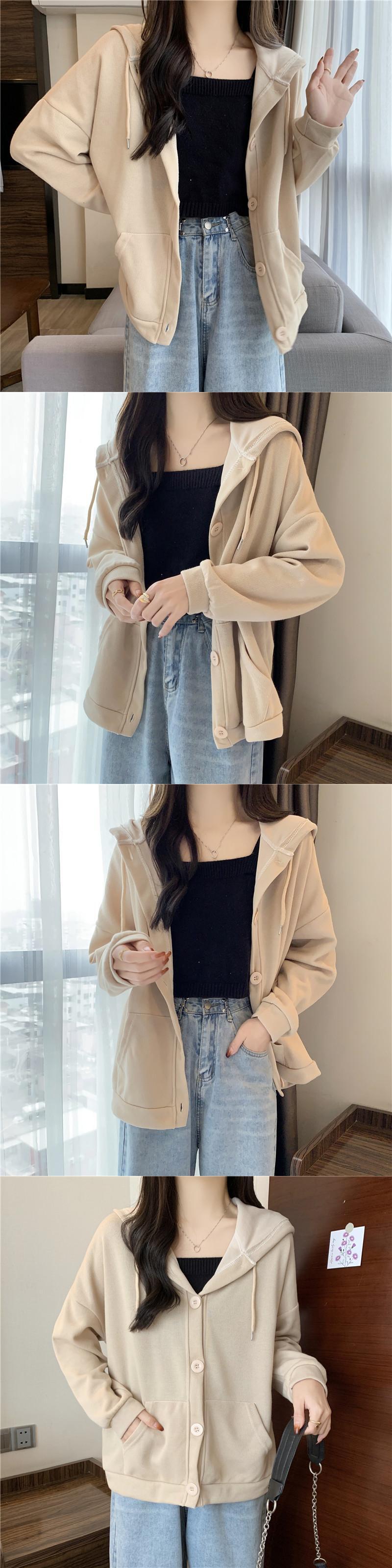 秋の固体特大コート怠惰なパーカー女性ボタンスポーツウェアパーカー薄型トレーナーフード付きカーディガンジャケット オータム 秋物 ソリッドカラー Aim4760077857