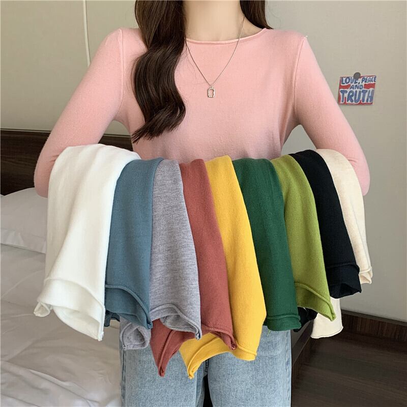 秋の長袖の女性のセーター基本的な O ネックニットセータープルオーバーソフトジャンパー底入れトップス y2k 服 ロング オータム 秋物 Oネック Aim73275923641