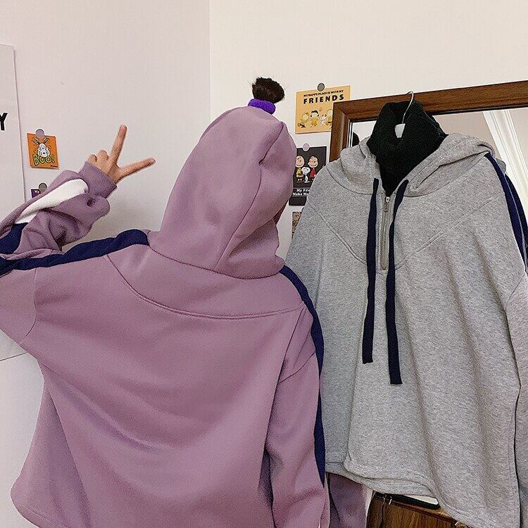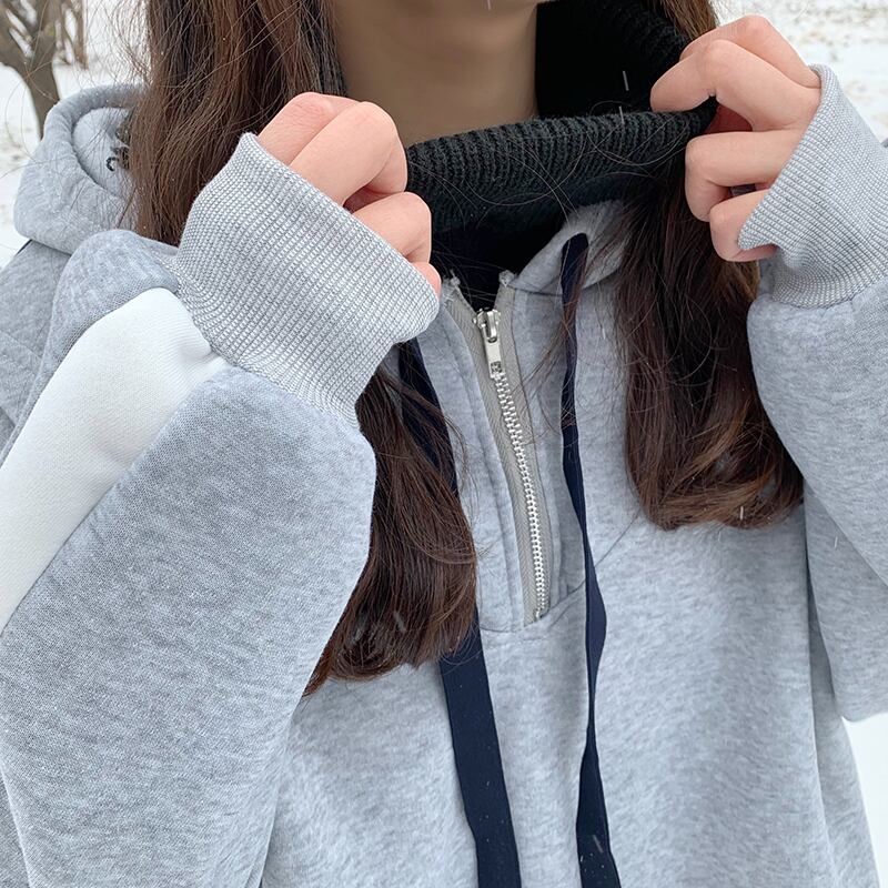 秋冬フリースパーカー女性原宿タートルネックパッチワーク特大パーカーカジュアルフルスリーブ厚いスウェットシャツ y2k 服 かわいい オータム 秋物 ウィンター 冬物 Aim12746331708