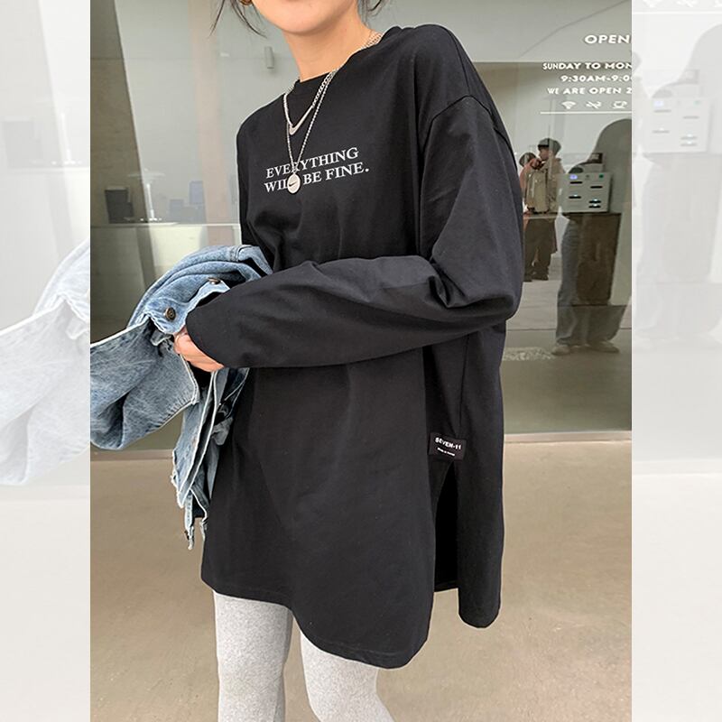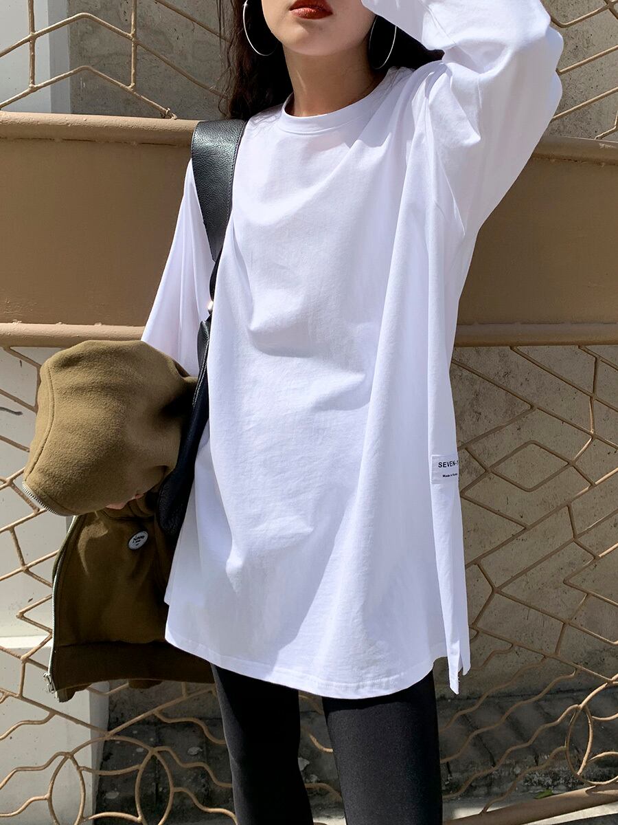 春秋の長袖ソリッド Tシャツ女性原宿 O ネック特大底入れ Tシャツロング y2k トップス かわいい スプリング 春物 オータム 秋物 Oネック ソリッドカラー Aim73754209883