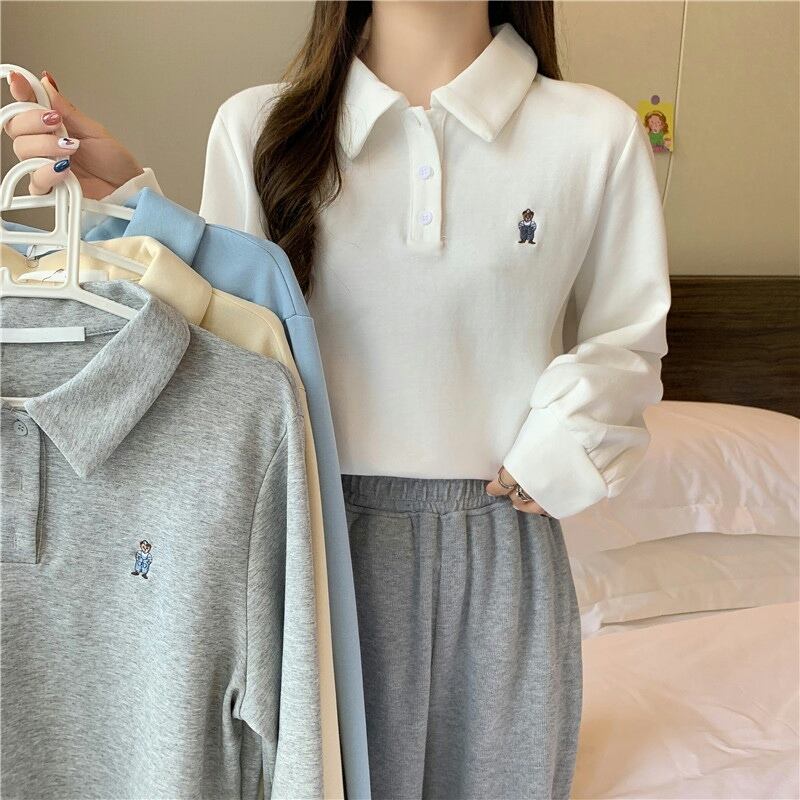漫画刺繍クロップトップパーカー女 ホワイト コットン ストリート 大人ガーリー かわいい Aim25218704494