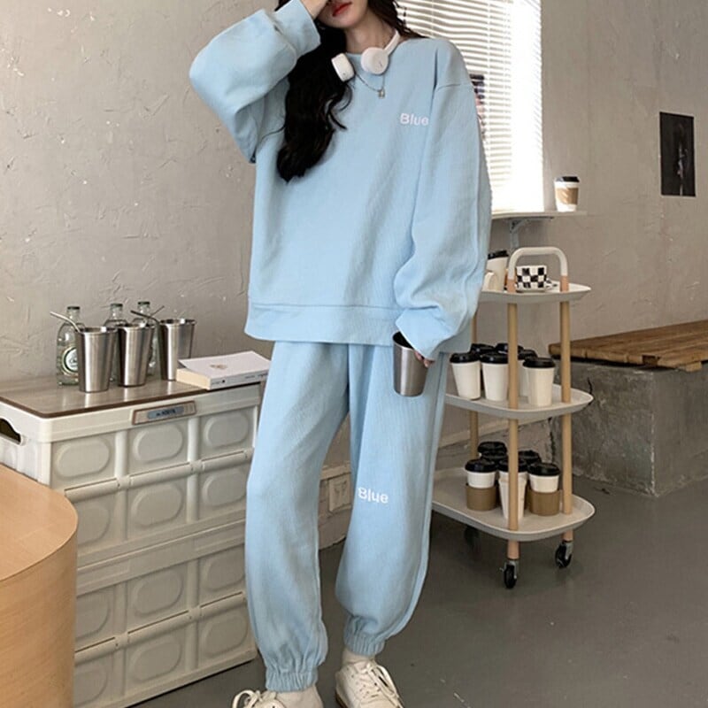 レディース衣装服プレッピースタイル女性トラックスーツ韓国 2 ピースセット薄いスウェットとパンツラウンジウェアスポーツスーツ シャツ Aim72649722880