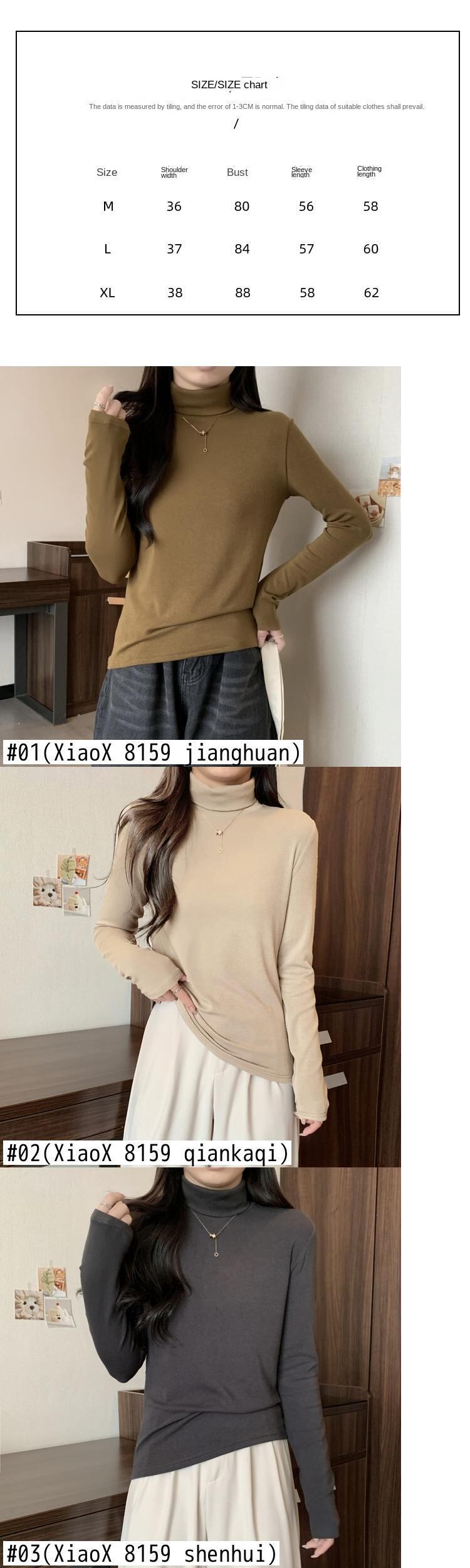 冬暖かい底入れ女性 Tシャツ秋タートルネックスリム Tシャツ韓国ソリッドベルベット長袖 Tシャツ女性グレートップス ロング オータム 秋物 ウィンター 冬物 ソリッドカラー Aim22802832698