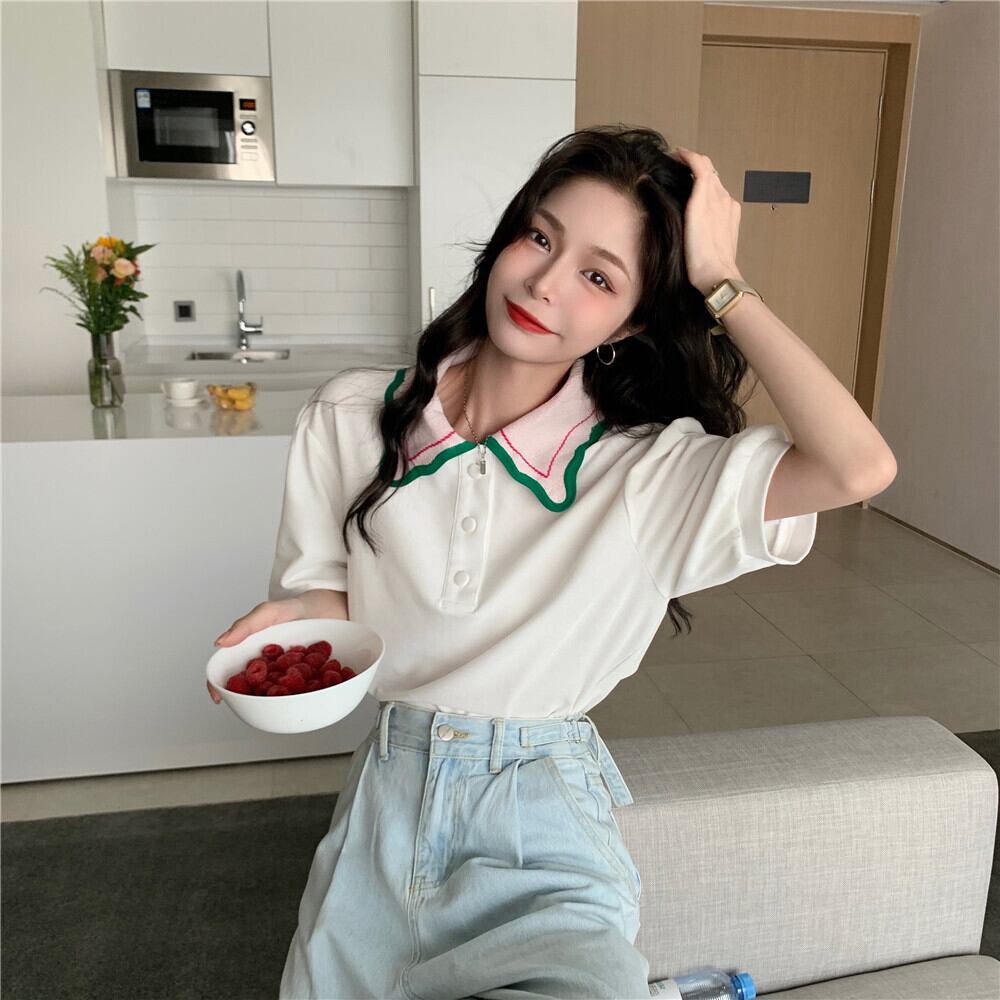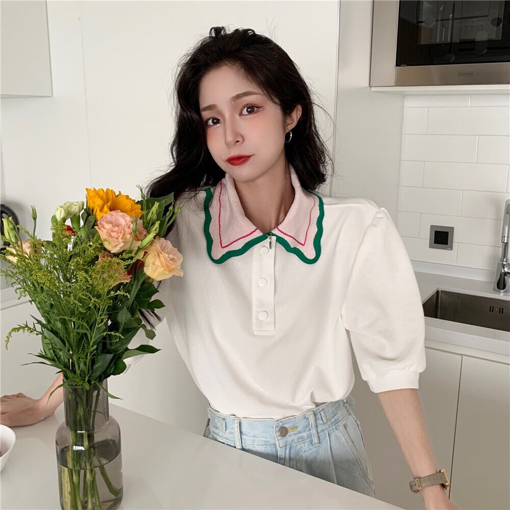 プレッピースタイルピンク tシャツグラフィック tシャツ女性かわいい服原宿夏新固体女性半袖 Tシャツトップス ショート ハーフスリーブ 大人ガーリー サマー 夏物 ソリッドカラー Aim3020506617