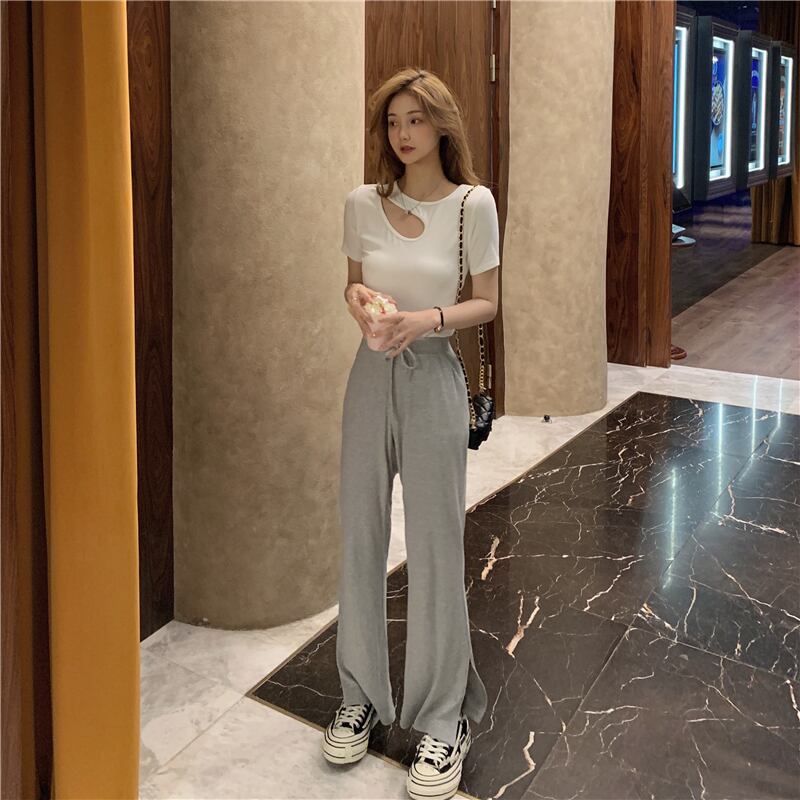 2022 夏ソリッド Tシャツ女性半袖セクシーな中空アウト Tシャツ原宿若いスリム黒、白ショートトップス ホワイト ブラック ハーフスリーブ かわいい サマー 夏物 ソリッドカラー Aim11822167471