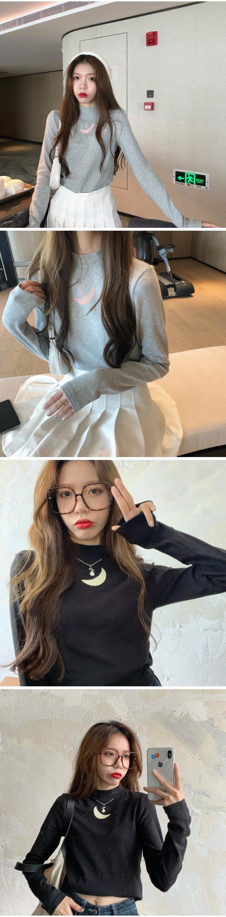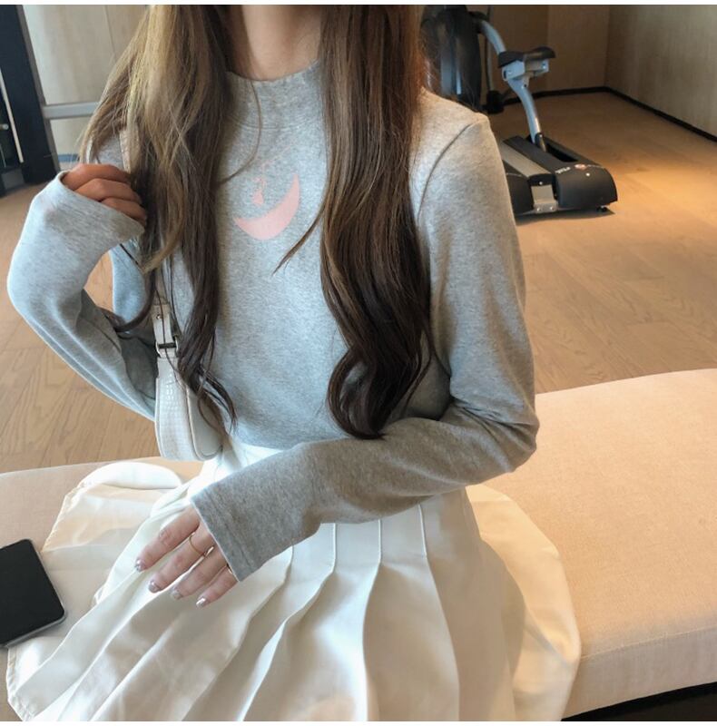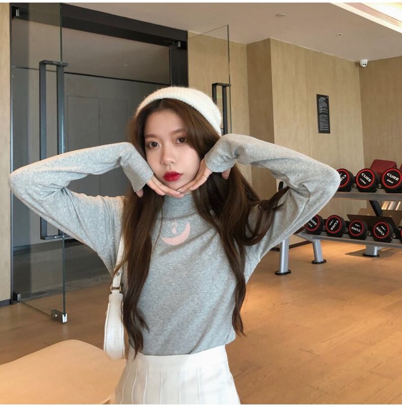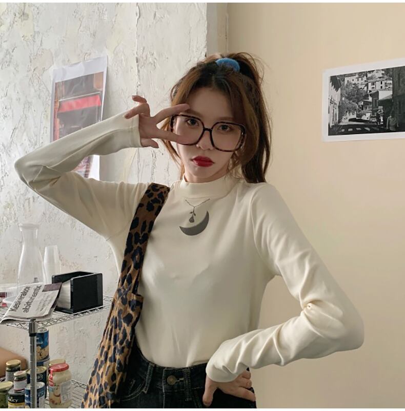 秋綿薄い Tシャツ女性スリムハーフタートルネック印刷女性 tシャツ長袖底入れ Tシャツ黒、白 y2k トップス ロング ホワイト ブラック コットン オータム 秋物 Aim23955428210