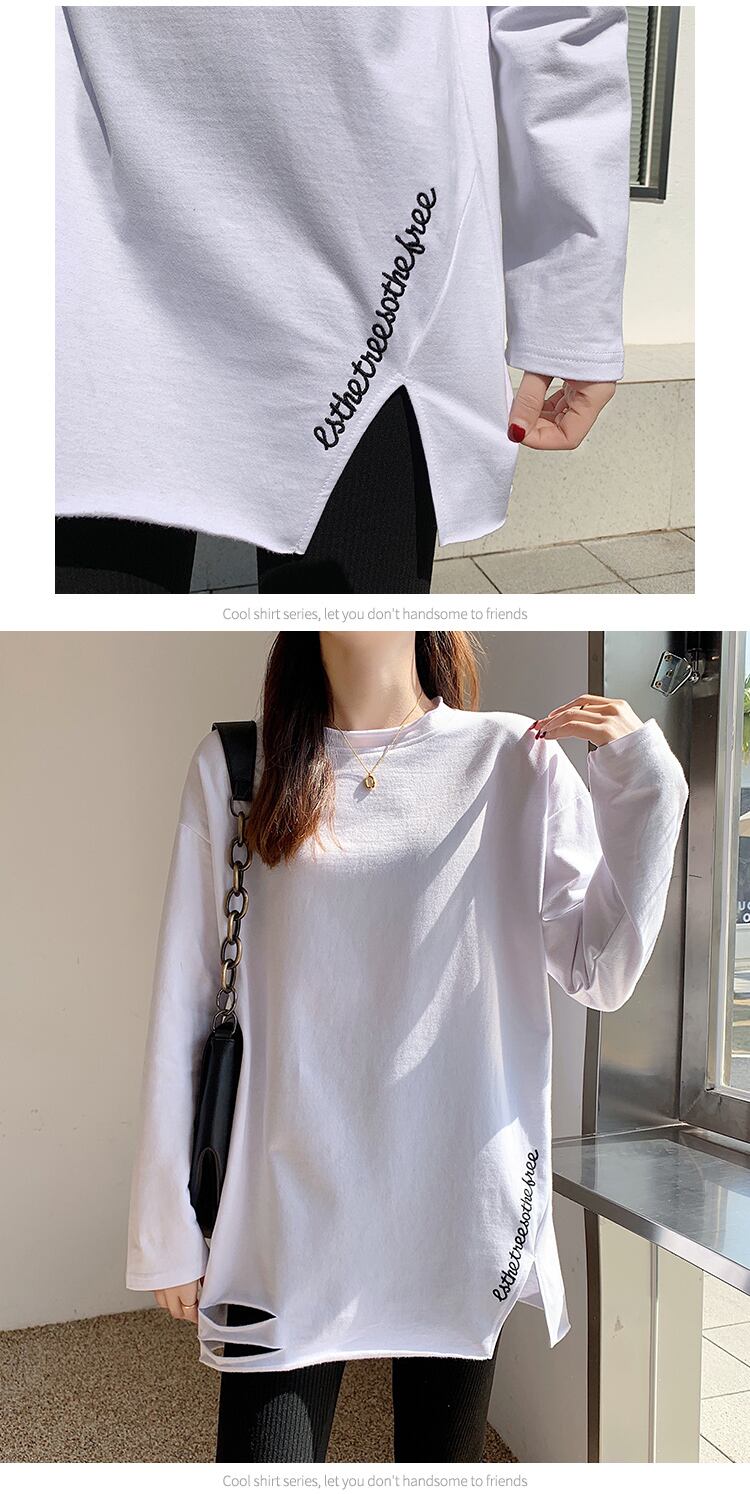 純綿長袖手紙刺繍 Tシャツ女性原宿特大底入れ Tシャツロング y2k 白トップス ホワイト コットン かわいい Aim92705325046