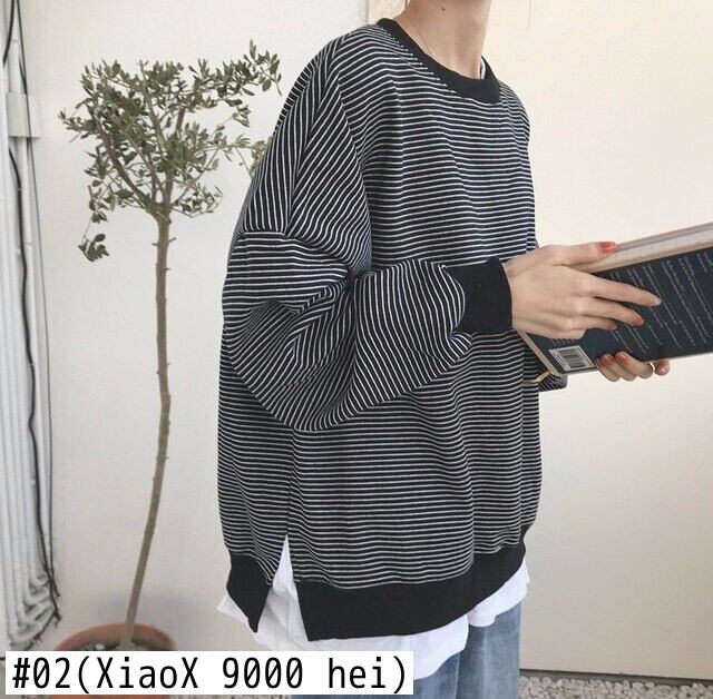 原宿ストライプパッチワーク特大パーカーカジュアルフルスリーブ薄型スウェットシャツ偽ツーピースパーカー女性 y2k 服ストリート かわいい Aim82491106085