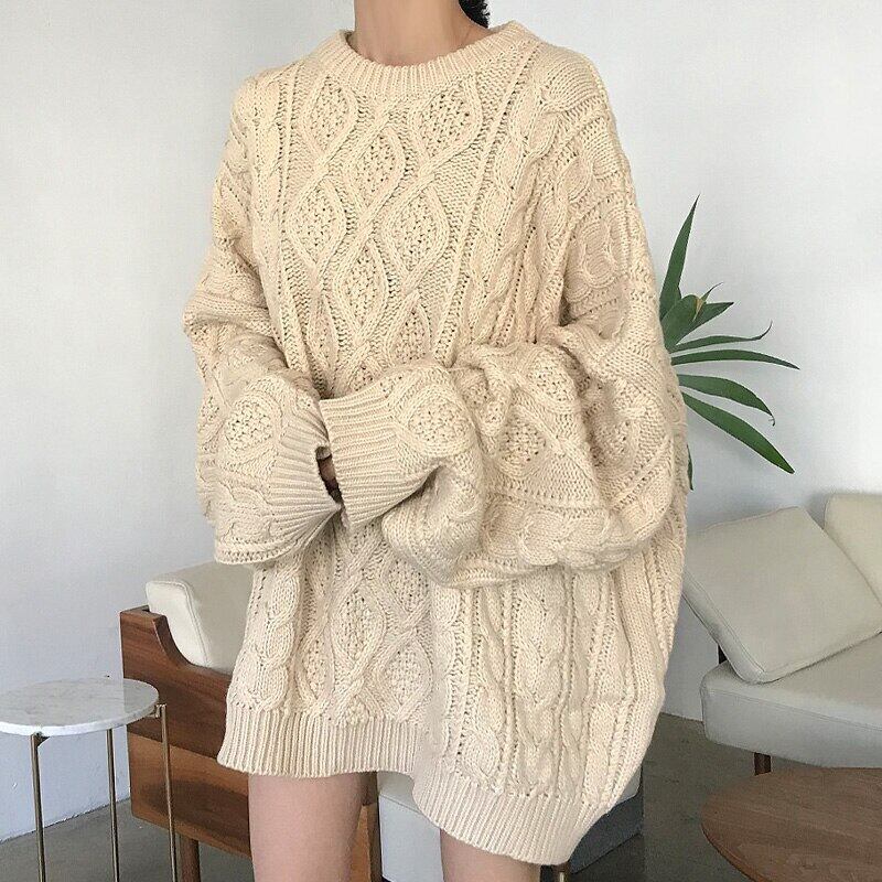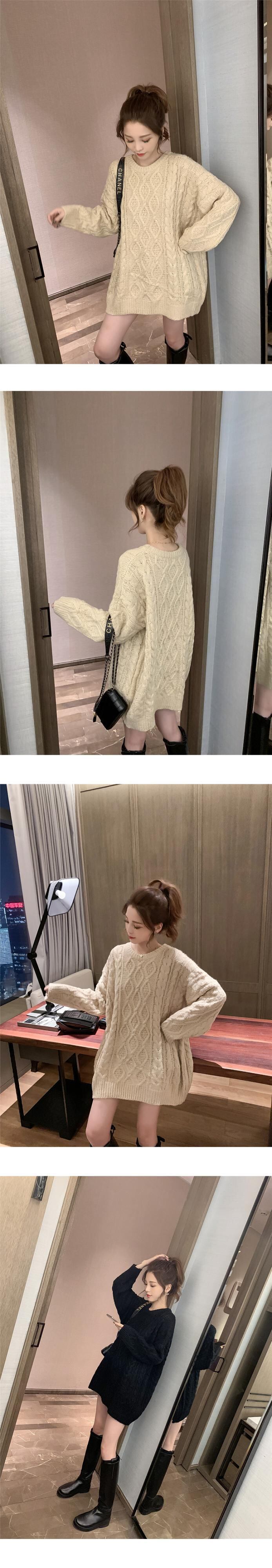 秋冬無地 O ネックセーター女性原宿長袖ニット特大セータープルオーバージャンパートップ ロング かわいい オータム 秋物 ウィンター 冬物 Oネック ソリッドカラー Aim13525078390
