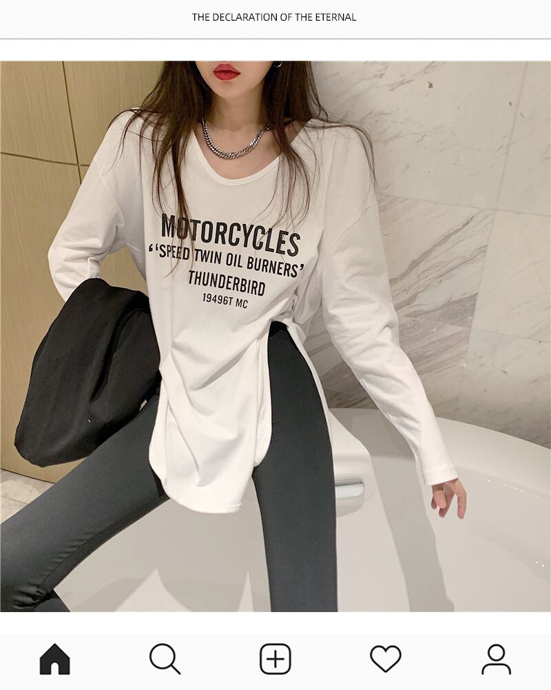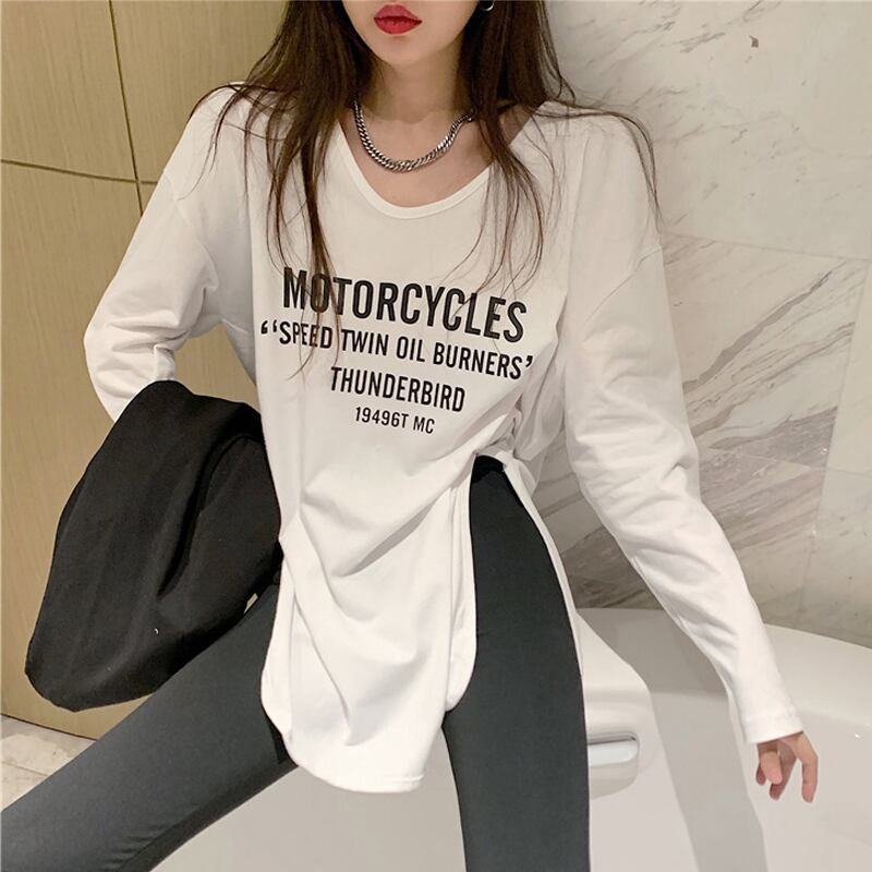 ファッション特大 Tシャツピュアコットングラフィック Tシャツ女性クリエイティブスプリットサイドロング Tシャツ V ネック女性 tシャツ手紙ホワイトトップス Vネック Aim95014784067
