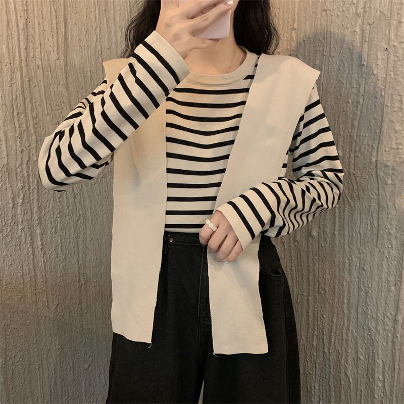原宿スカーフ襟女性 tシャツ y2k 服ストライプスリムニット Tシャツ長袖ゴスパープルトップス女性 ロング かわいい Aim78313660285