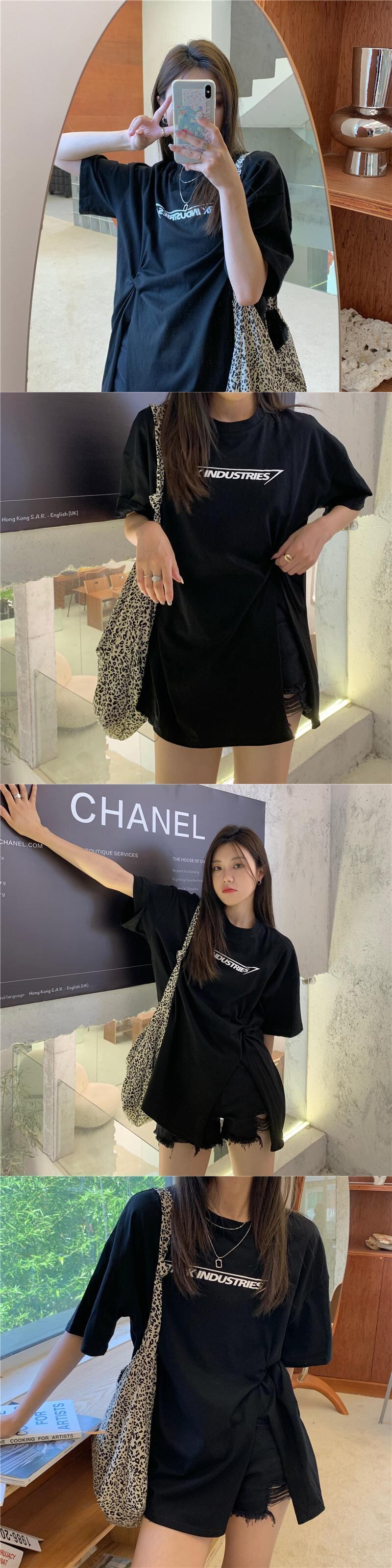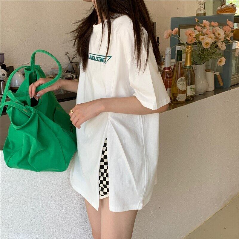 女性 Tシャツ原宿 BF スプリットデザイン Tシャツ女性特大黒、白トップス O ネック半袖手紙 Tシャツ ショート ホワイト ブラック ハーフスリーブ かわいい Oネック Aim12350691183