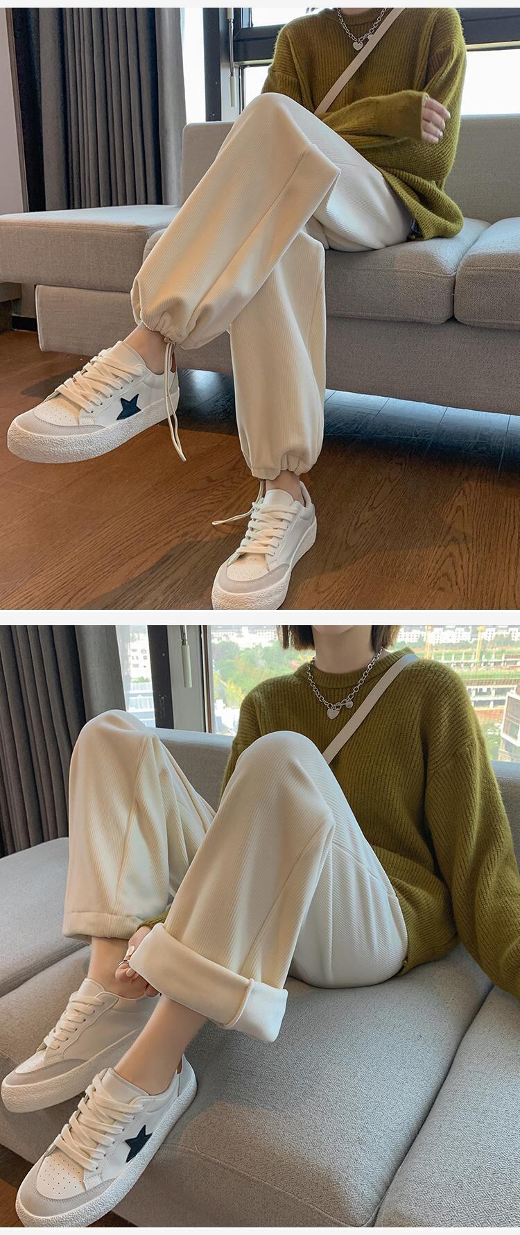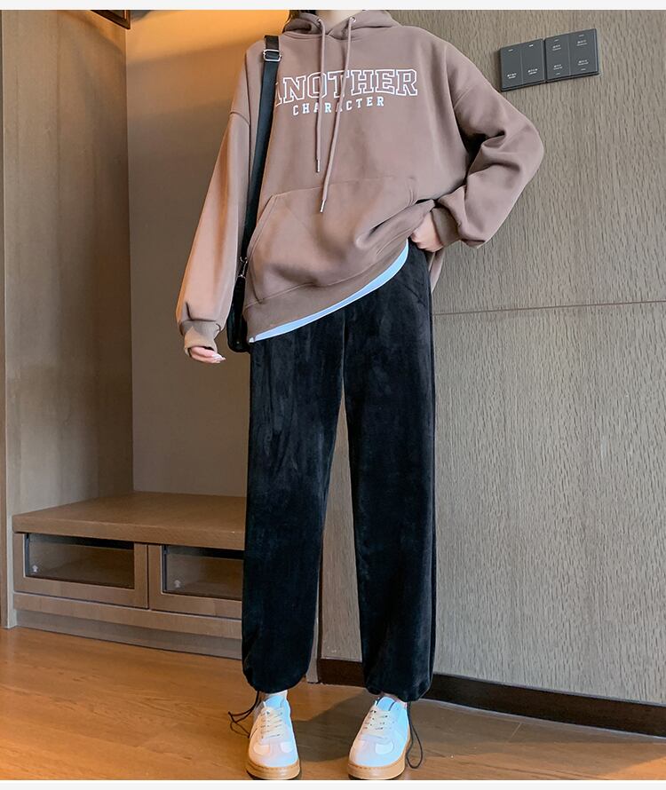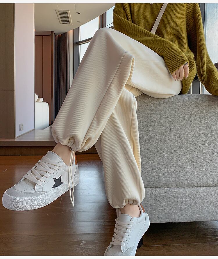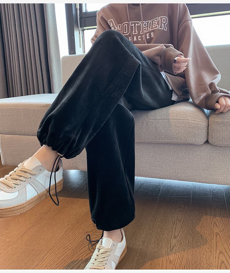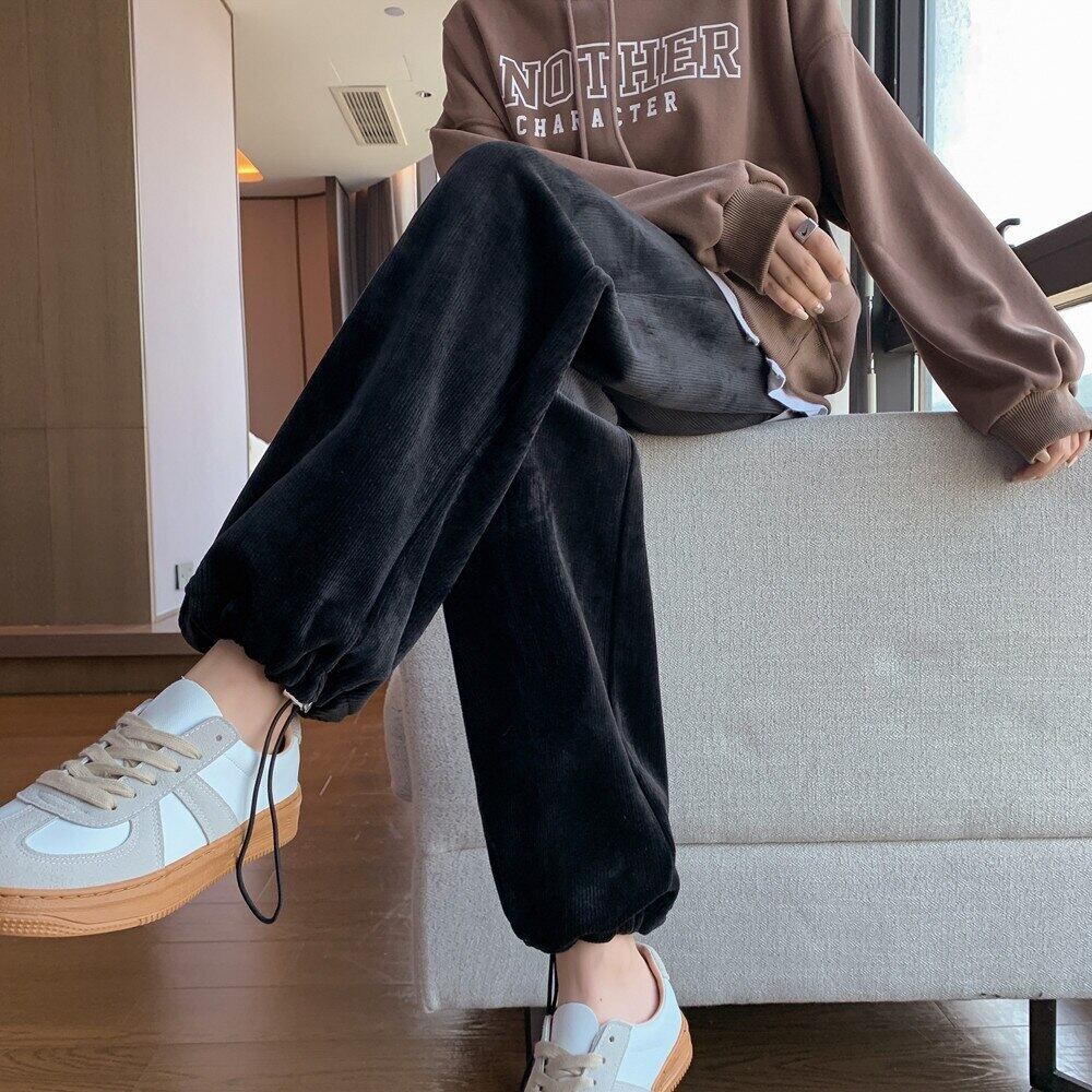 原宿フリース暖かいハーレムパンツ女性ウエスト緩い厚い弾性コーデュロイスウェットパンツストリートスポーツ y2k パンツ エラスティック 伸縮 かわいい Aim18688797051