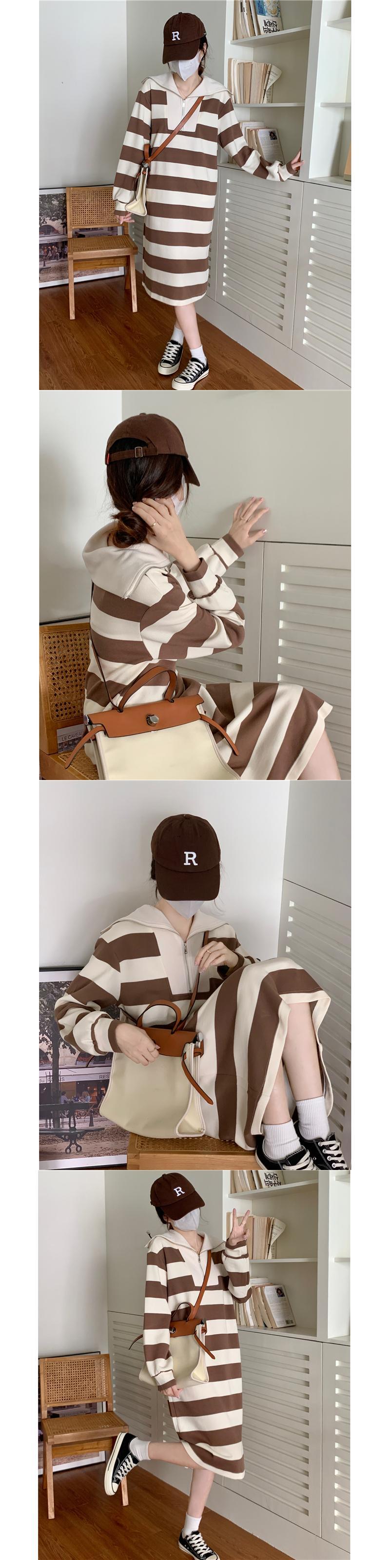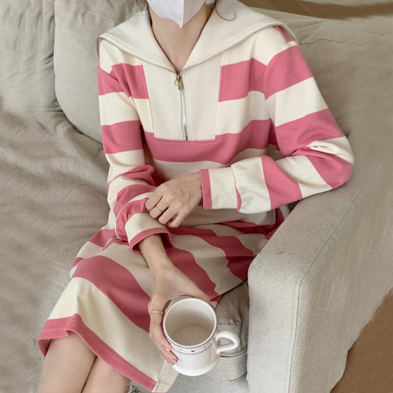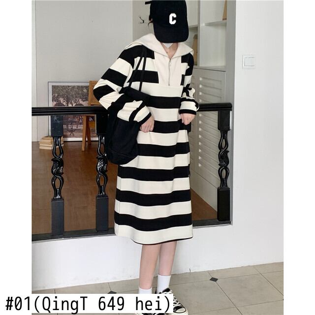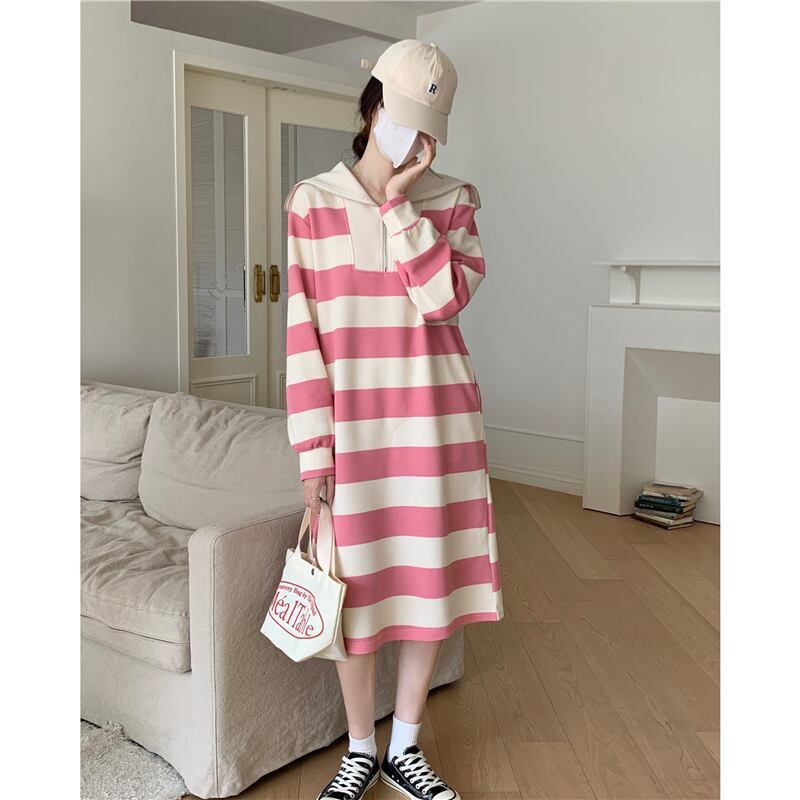 原宿女 ロング 長袖 ストリート かわいい パーカー ドレス ストライプ Aim4354592313