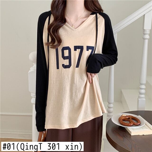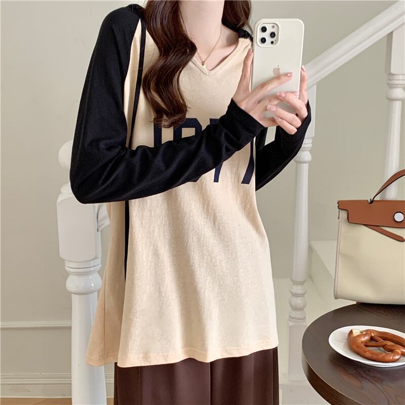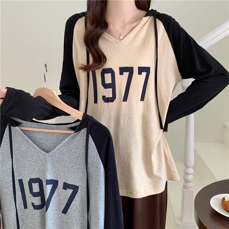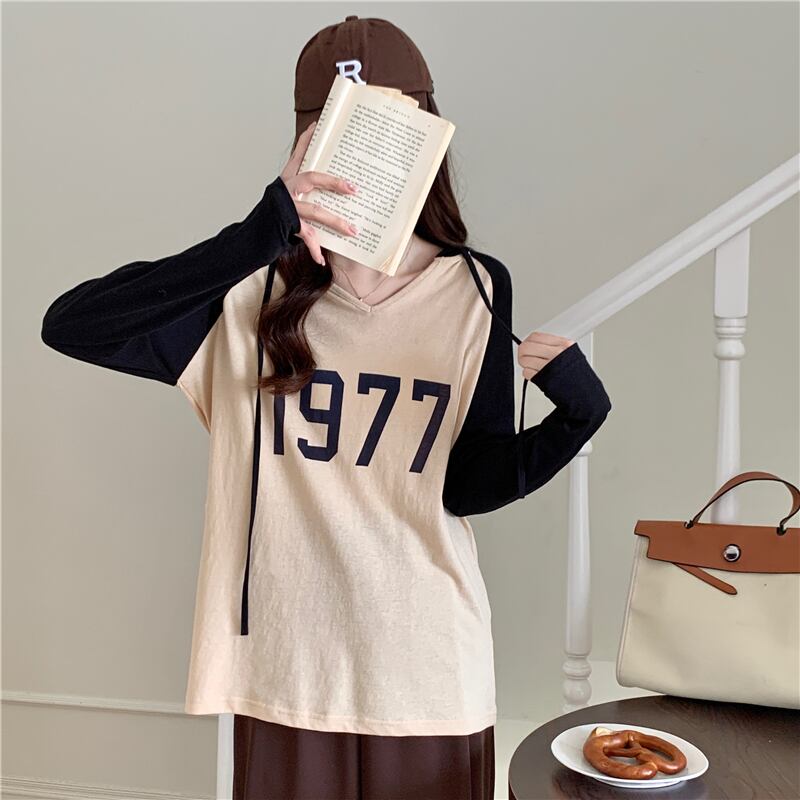 秋冬フリース長袖 Tシャツ女性原宿特大レタープリントフード付き Tシャツカラーマッチング y2k トップ ロング かわいい オータム 秋物 ウィンター 冬物 Aim64174412786