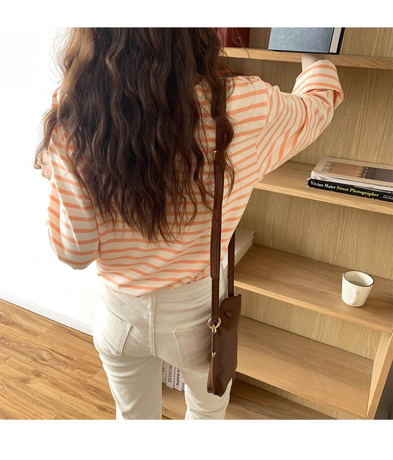 ストライプ tシャツ春秋長袖女性の tシャツルーズ tシャツブルーオレンジ y2k 美的トップス ロング スプリング 春物 オータム 秋物 Aim10219044520