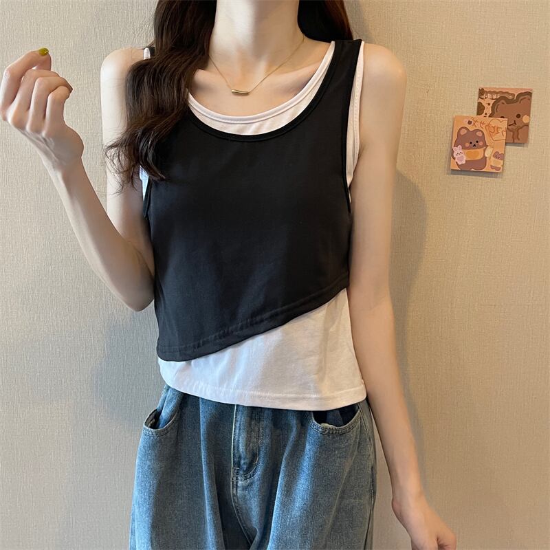 夏 2022 スペルカラータンクトップコットンブラックグレースキニーキャミソールベーシックキャミソールトップ偽二枚トップス女性 サマー 夏物 Aim69486284173