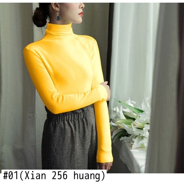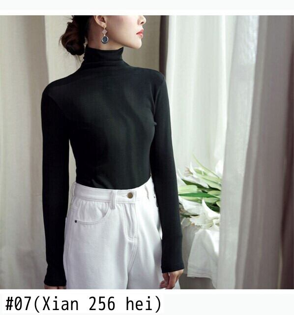 秋冬ベルベット Tシャツ女性原宿長袖固体タートルネックスリム底入れ Tシャツ黒厚く暖かいトップス ロング ブラック かわいい オータム 秋物 ウィンター 冬物 ソリッドカラー Aim15192490170