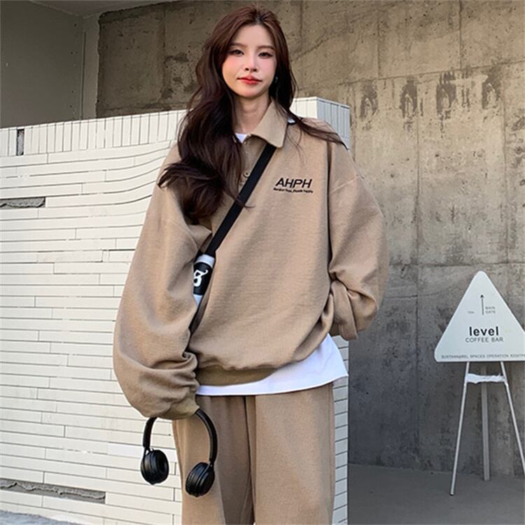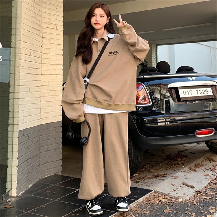 レディース衣装服春女性トラックスーツ韓国 2 ピースセット緩い薄いスウェットとパンツラウンジウェアスポーツスーツ シャツ スプリング 春物 Aim61445192681