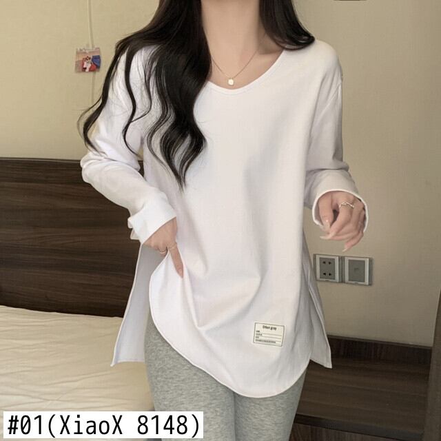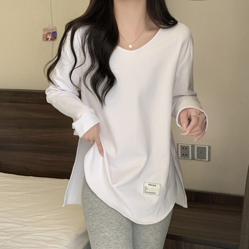 原宿ゆるい厚く暖かいサイドスプリット底入れ Tシャツ女性秋冬ベルベット長袖ソリッド Tシャツ女性 y2k トップ ロング かわいい オータム 秋物 ウィンター 冬物 ソリッドカラー Aim35403633630