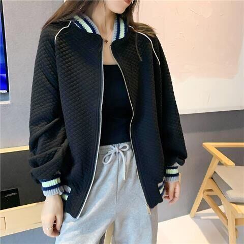 秋の固体特大野球パーカー女性ジッパーコートスポーツウェアパーカー薄型トレーナーカーディガンジャケット オータム 秋物 ソリッドカラー Aim17251093887