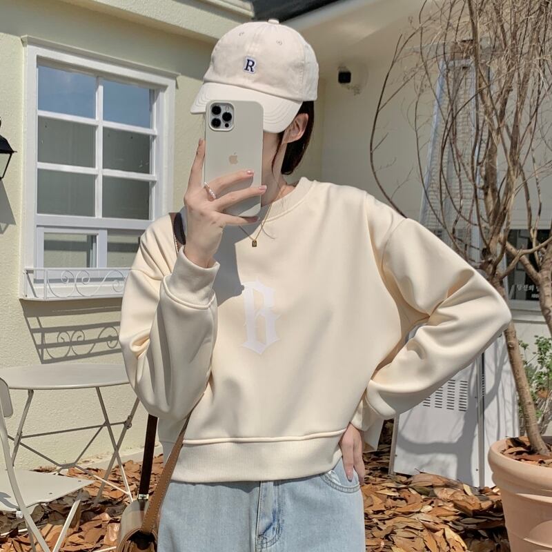 秋冬フリース暖かいパーカー女性クロップトップカジュアルルーズレタープリントパーカー韓国かわいいベルベット厚みのoネックスウェットシャツ 大人ガーリー オータム 秋物 ウィンター 冬物 Aim35349791341