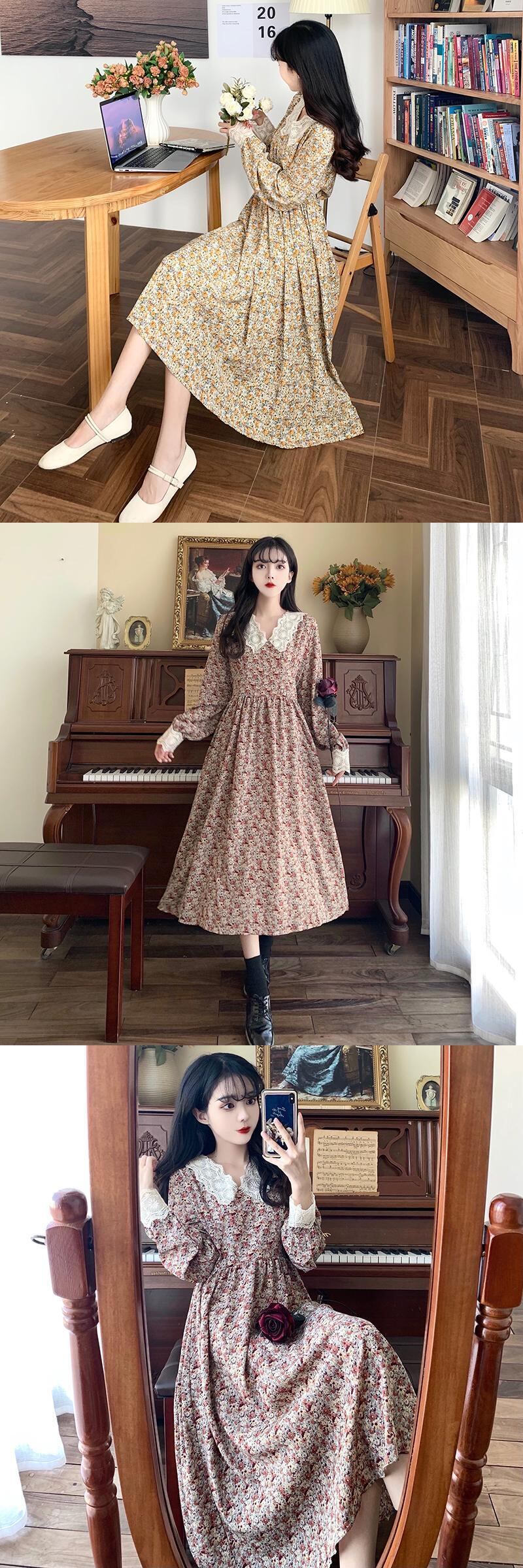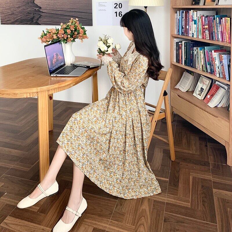 秋のヴィンテージ花柄ボディコンドレスフレンチスタイルのエレガントな長袖レースステッチドレス女性パーティーvestidos ロング オータム 秋物 ビンテージ Aim65892012958