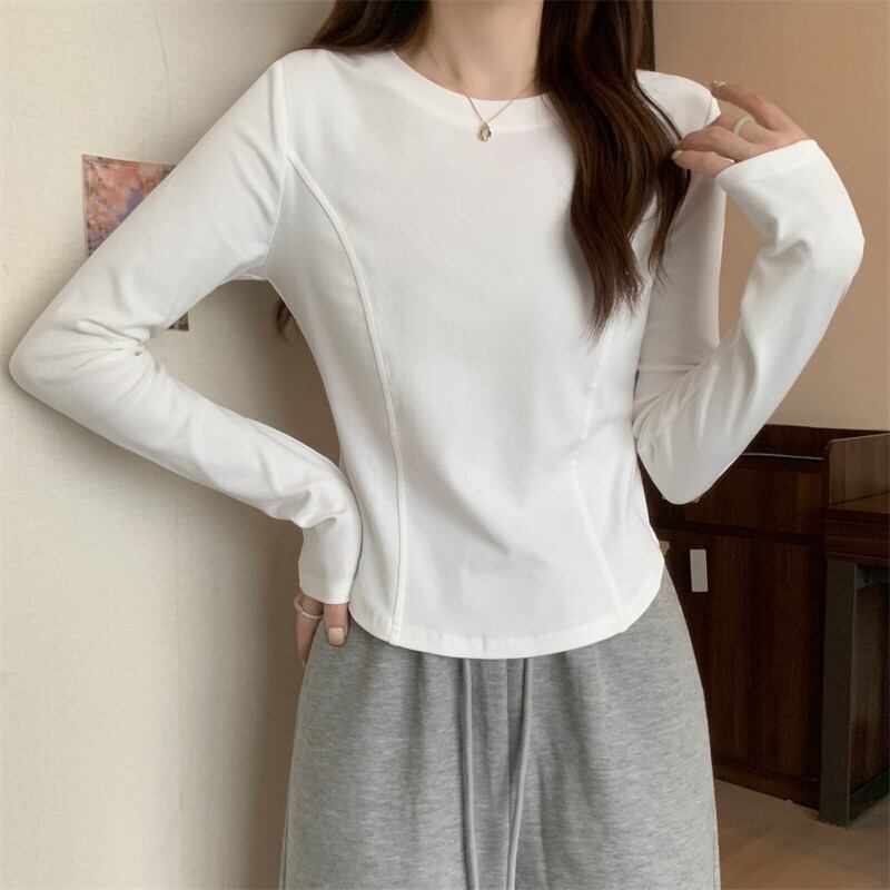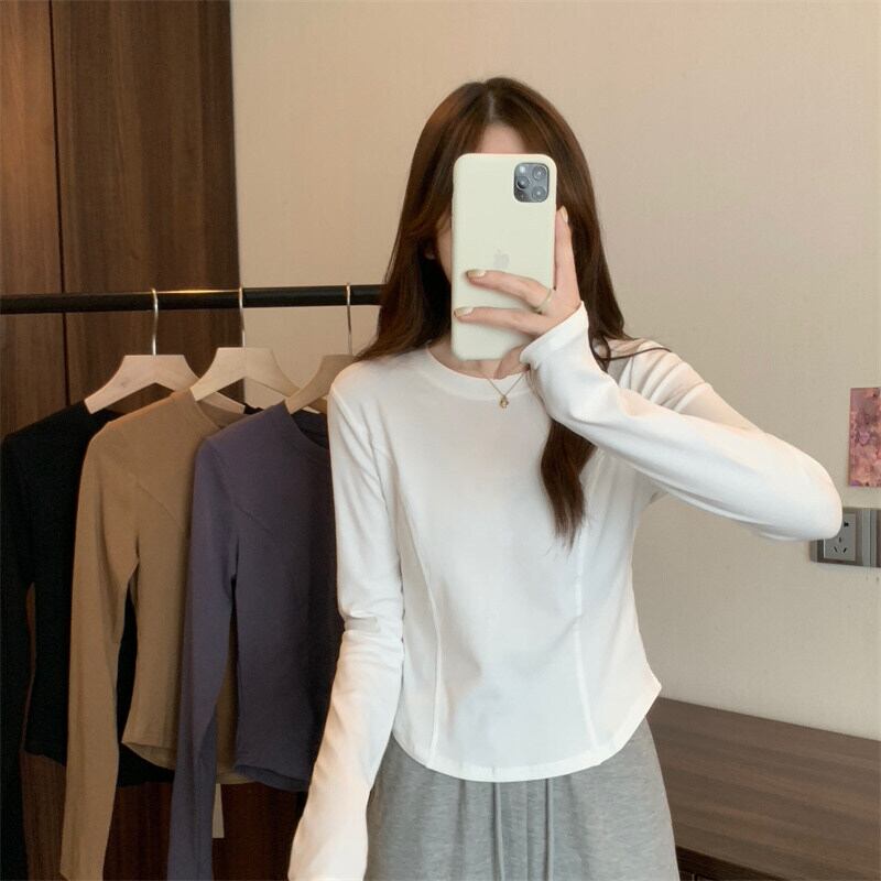 若いクロップドトップ秋不規則な長袖 Tシャツ女性原宿スリム全試合 Tシャツ Y2K 服 ロング かわいい オータム 秋物 Aim59619975580