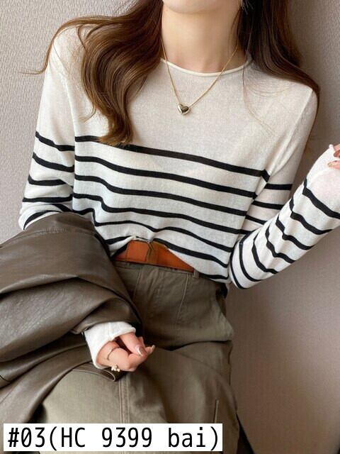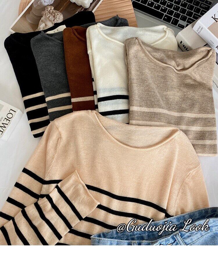 春秋薄編みトップス女性長袖ストライプセータースタイルニット底入れプルオーバー ロング スプリング 春物 オータム 秋物 Aim41958653833