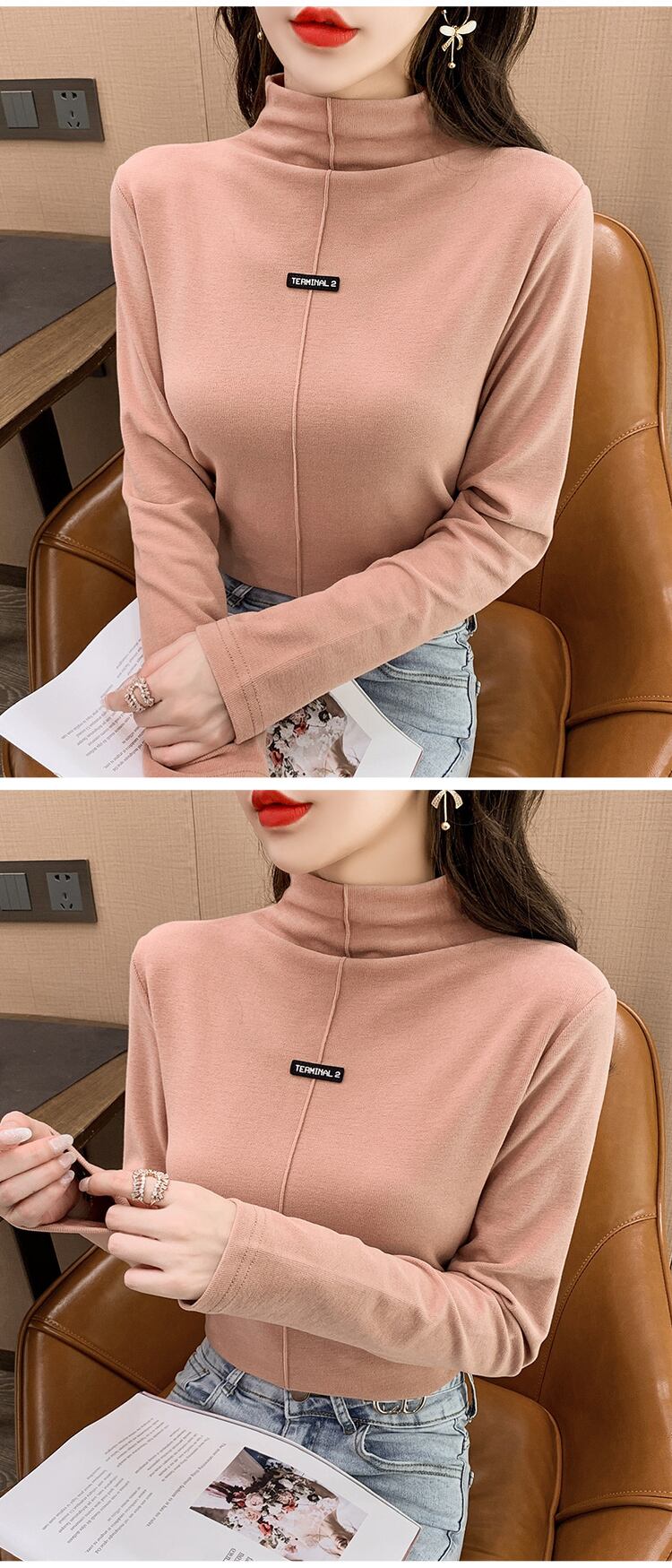 秋と冬の tシャツハーフタートルネック底入れプルオーバー女性白の基本的なトップシャツ原宿ゴシック韓国服 ホワイト かわいい オータム 秋物 ウィンター 冬物 Aim62713411063