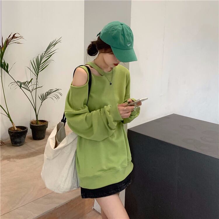 2022 原宿ゴシックセクシーな穴固体パーカー女性秋長袖薄型トレーナー韓国カジュアル特大パーカー y2k 服 ロング かわいい オータム 秋物 ソリッドカラー Aim15123870736