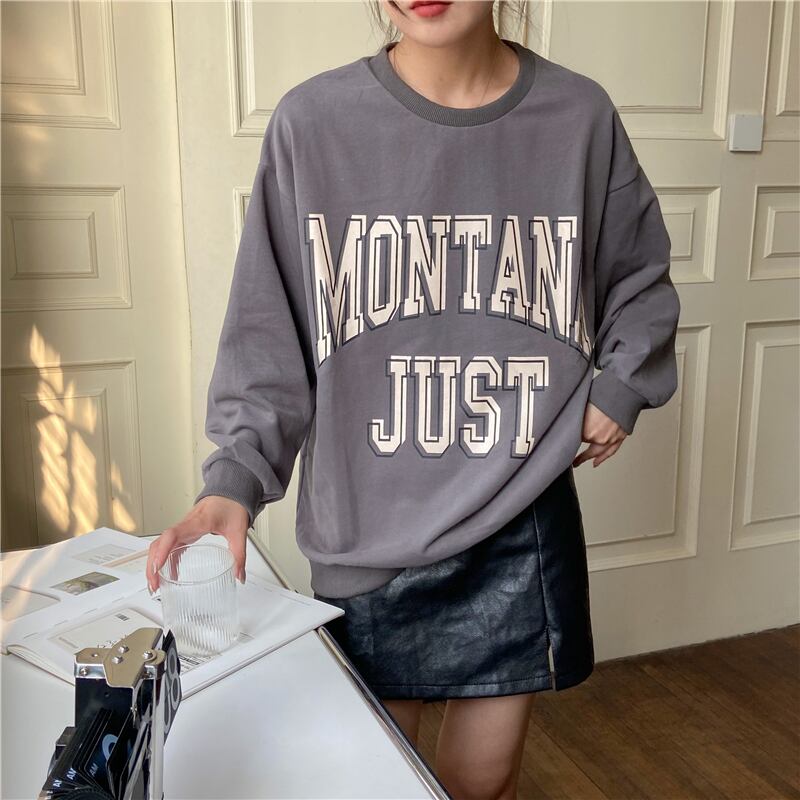 原宿長袖特大薄型トレーナーレタープリントパーカー女性ストリート若いゴス y2k トップス女性服 ロング かわいい Aim32715793389