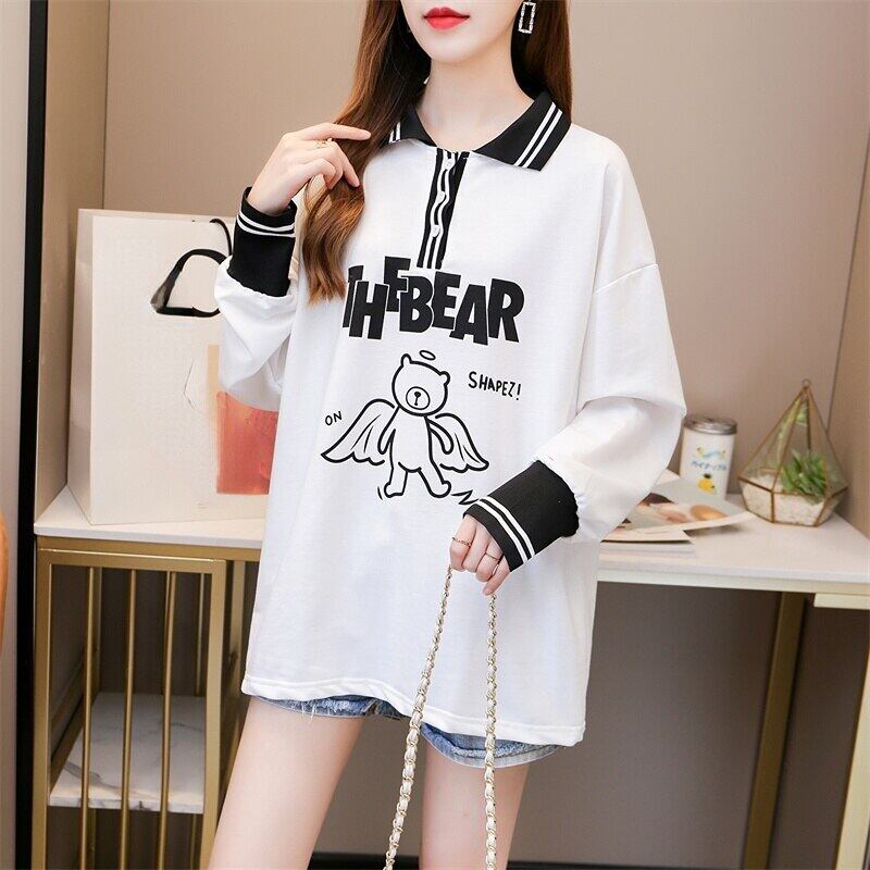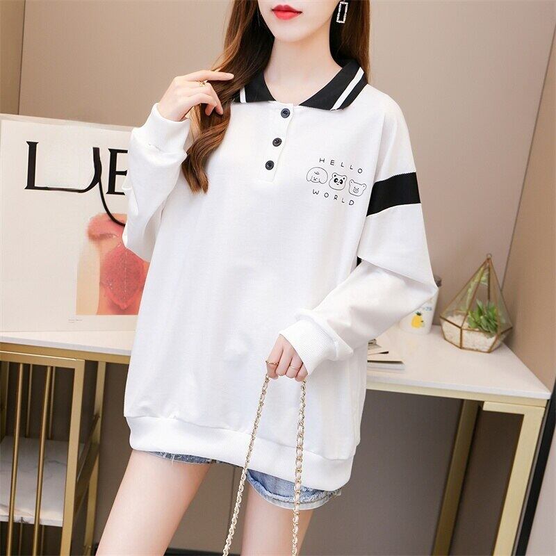 レディース レタープリント 薄手 スウェット プレッピースタイル 特大 長袖 パッチワーク 穴パーカー プルオーバー 学生服 ロング シャツ Aim87820911611