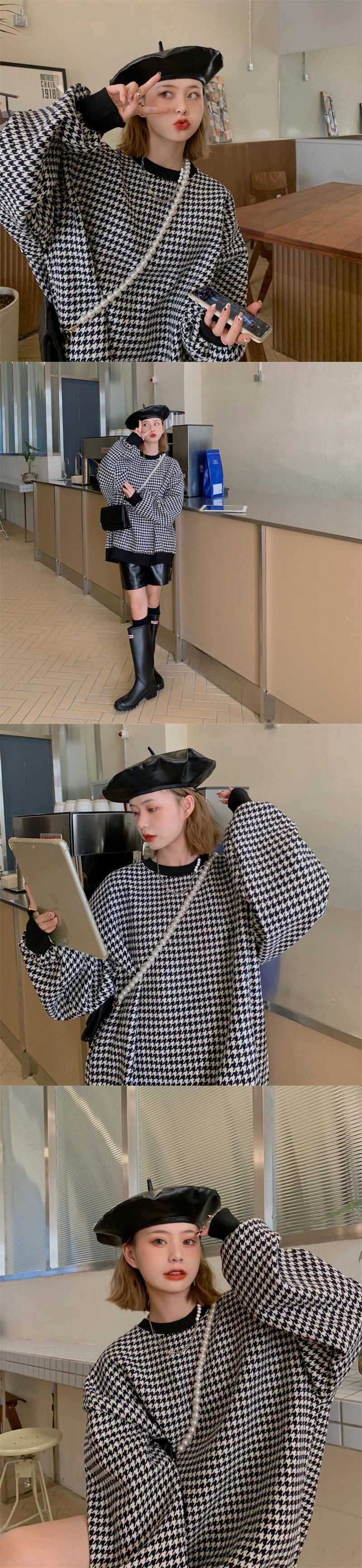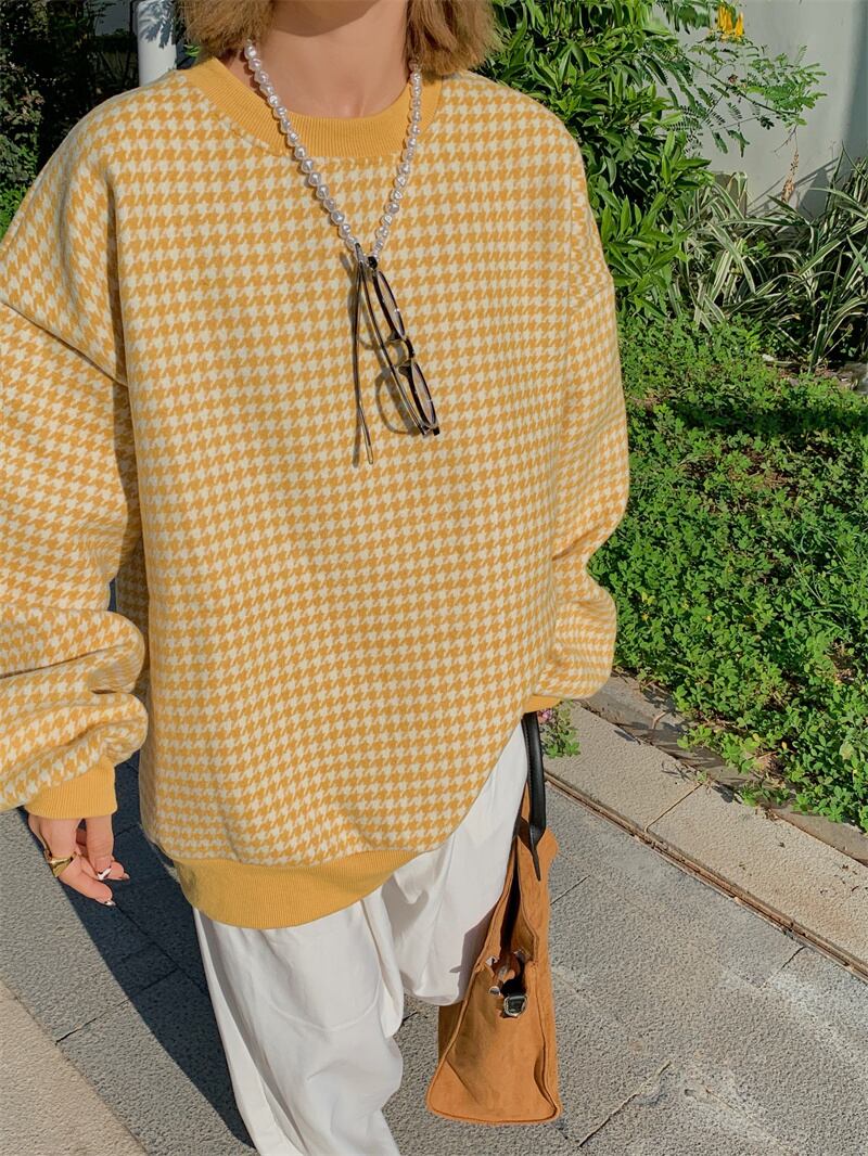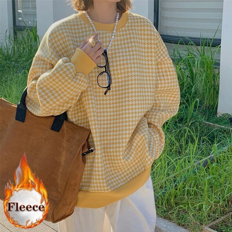 秋冬フリーストレーナー原宿千鳥格子パーカー女性長袖特大パーカーストリート黒ゴス y2k 服 ロング ブラック かわいい オータム 秋物 ウィンター 冬物 Aim7602477526