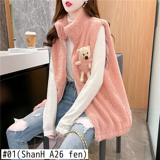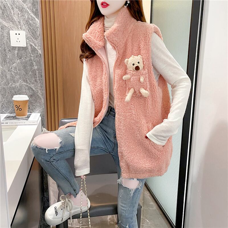 秋冬ソリッド厚く暖かいパーカーコートベストスタンド襟ラムフリーストレーナーベストジャケット女性暖かいピンクソフトチョッキ オータム 秋物 ウィンター 冬物 ソリッドカラー Aim54704596896